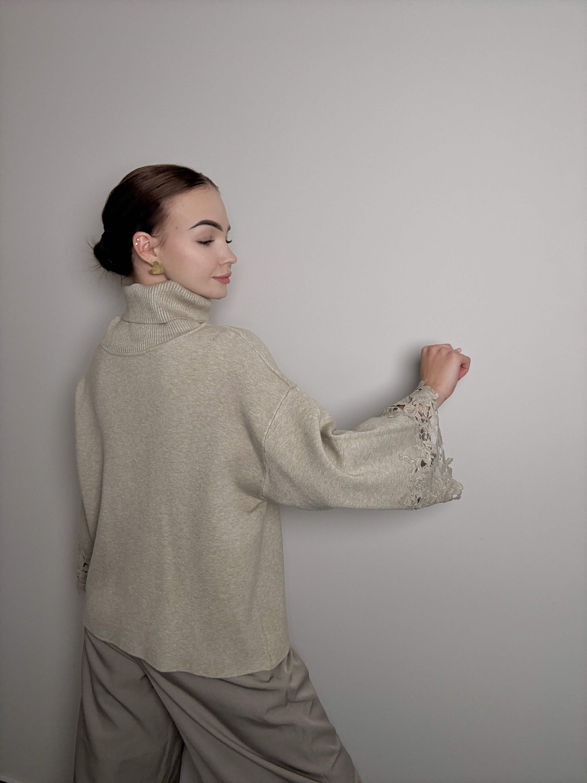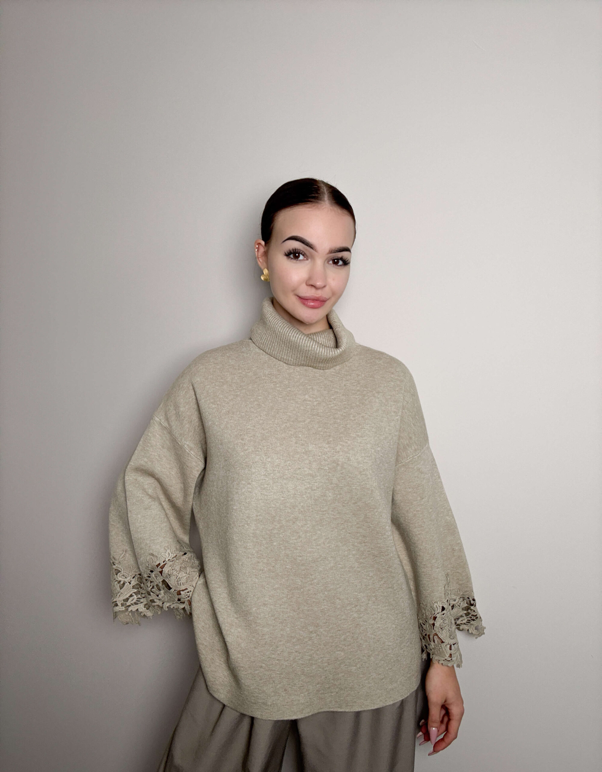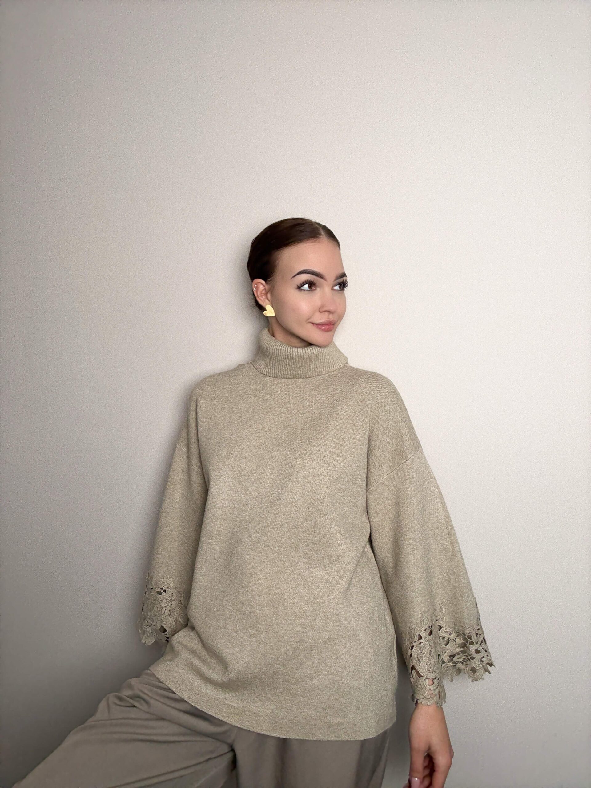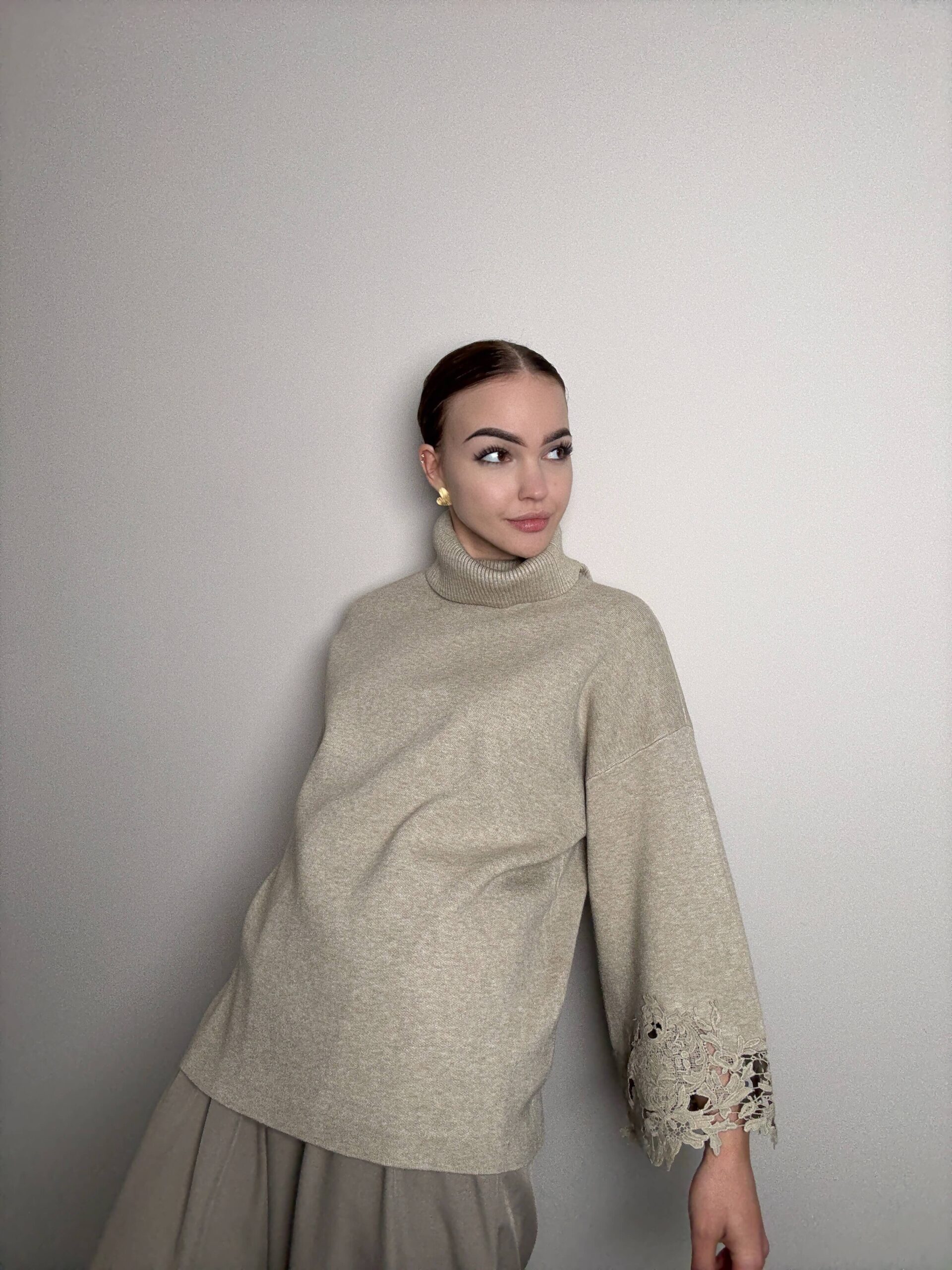 The viscose turtleneck with decorative embroidery on the sleeves is a combination of classic and subtle elegance. The soft, skin-pleasing viscose sits beautifully on the figure, while the delicate embroidery on the sleeves adds a uniquely feminine touch. Perfect for everyday and special occasions - stylish, comfortable and graceful.