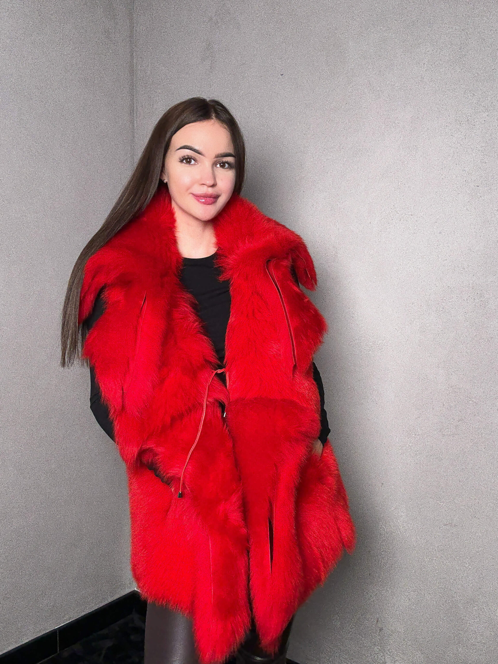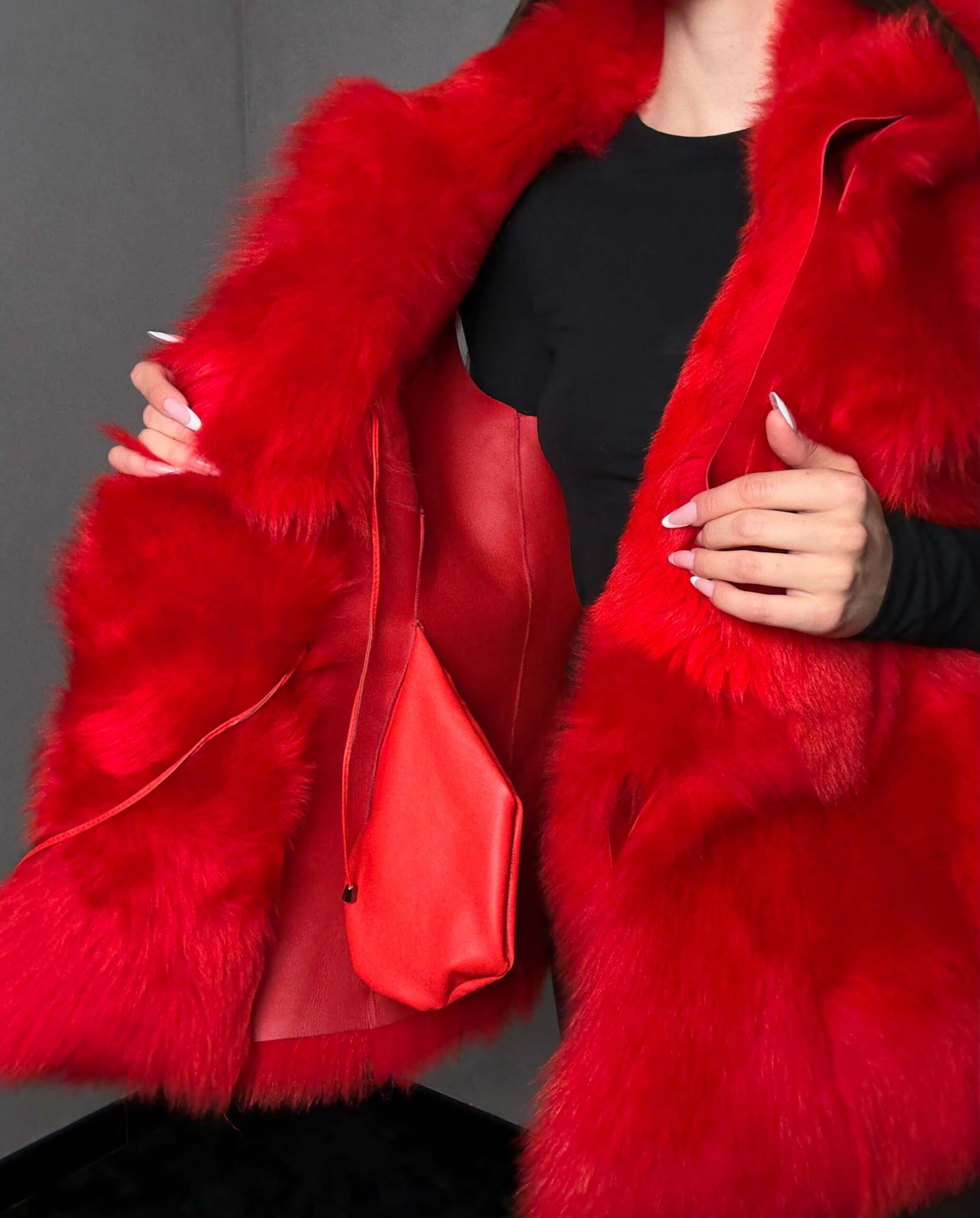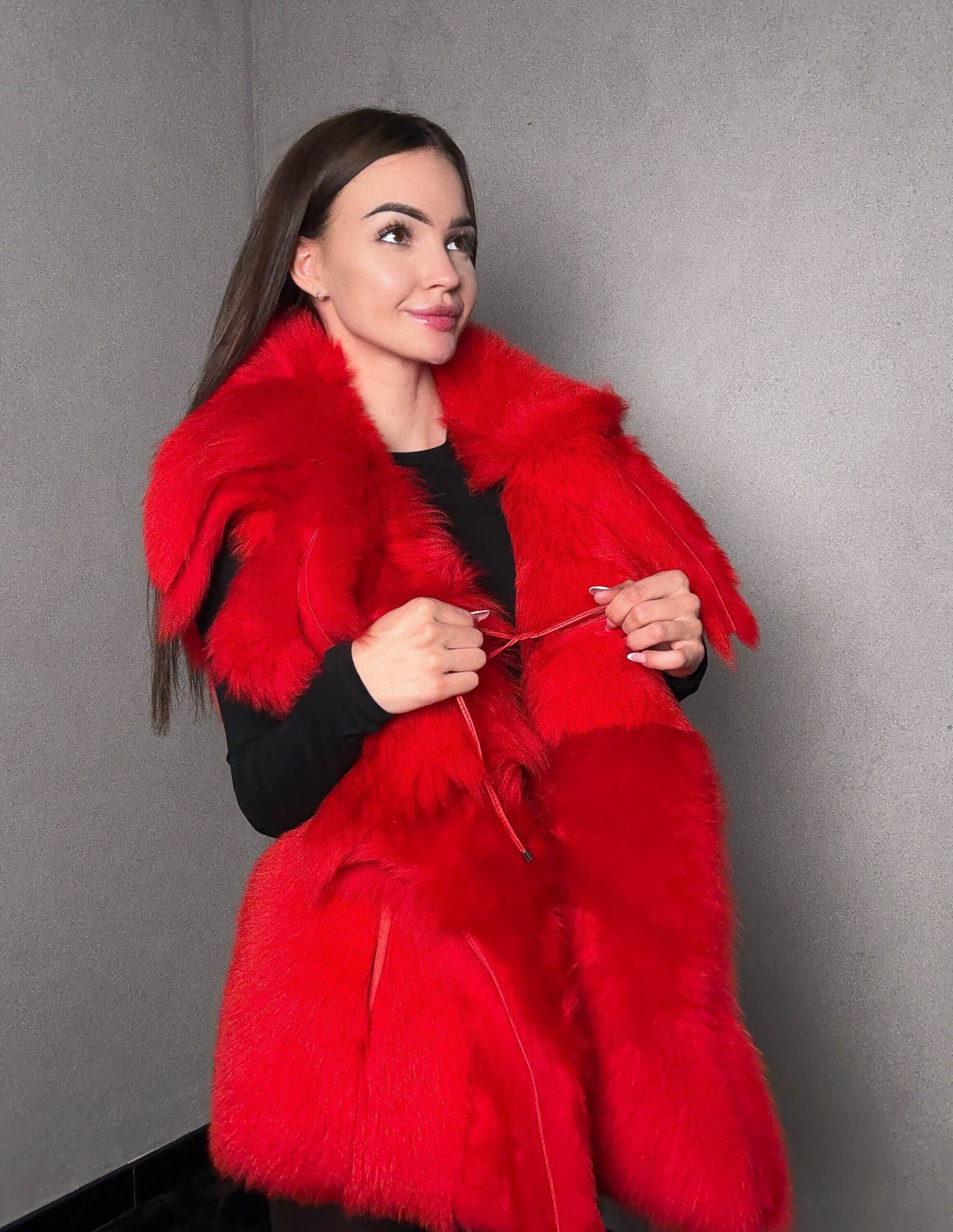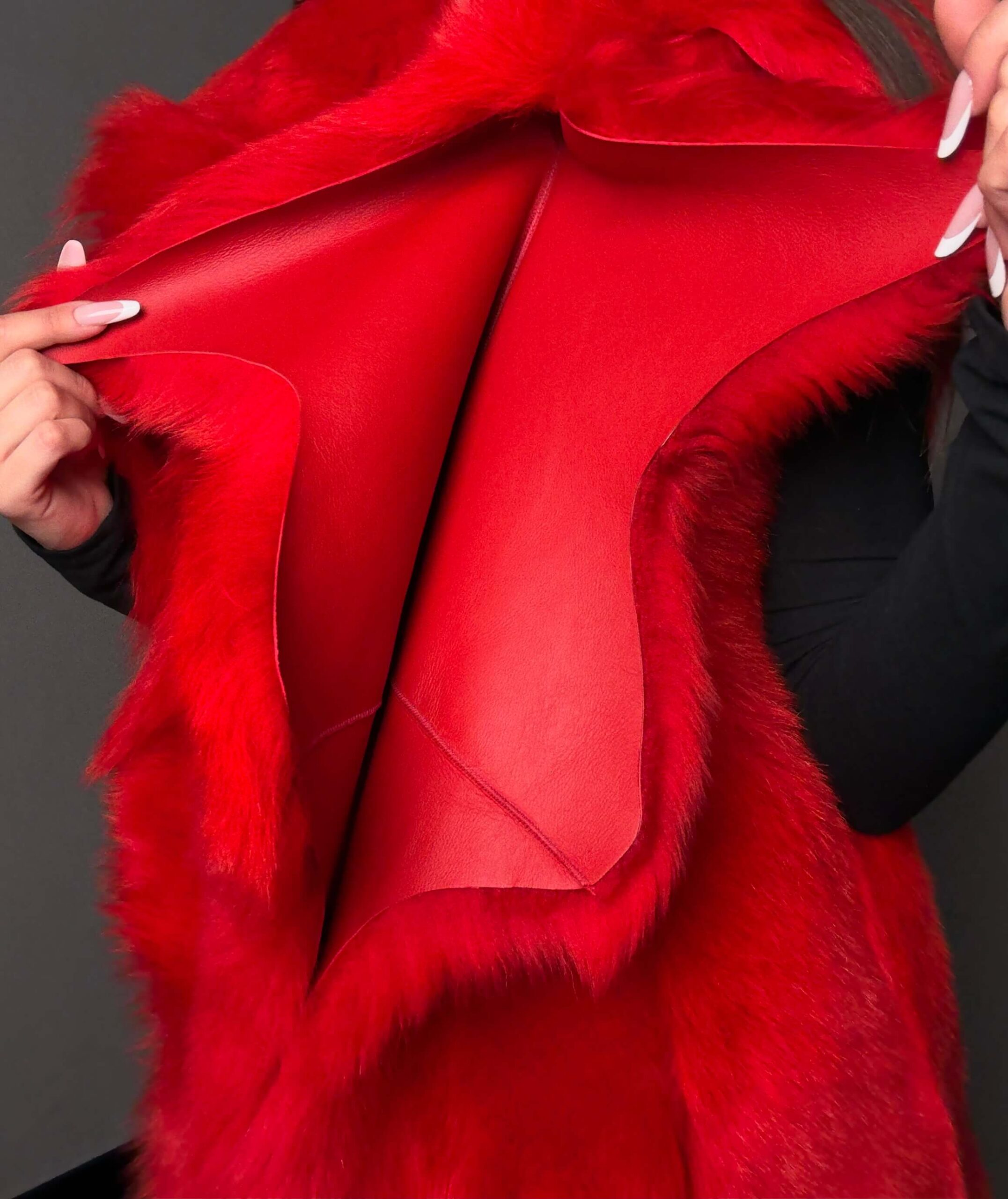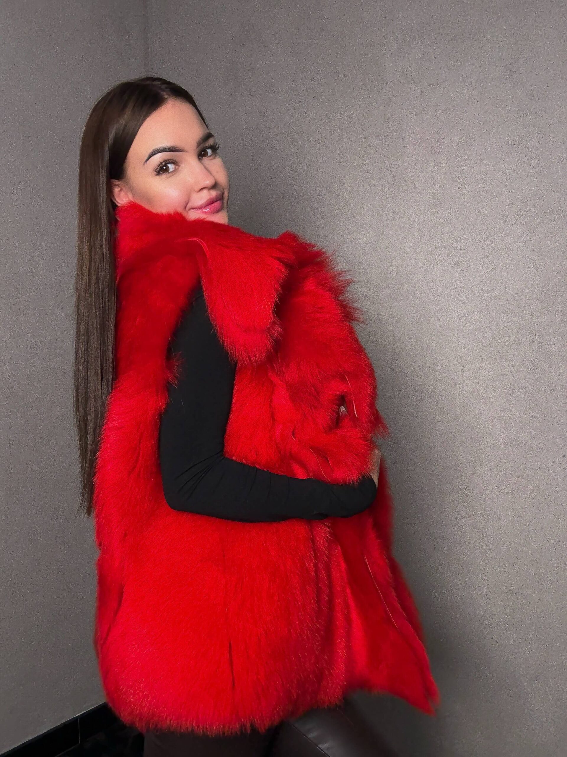 Kamizelka z naturalnego futra Gaeta – czerwona