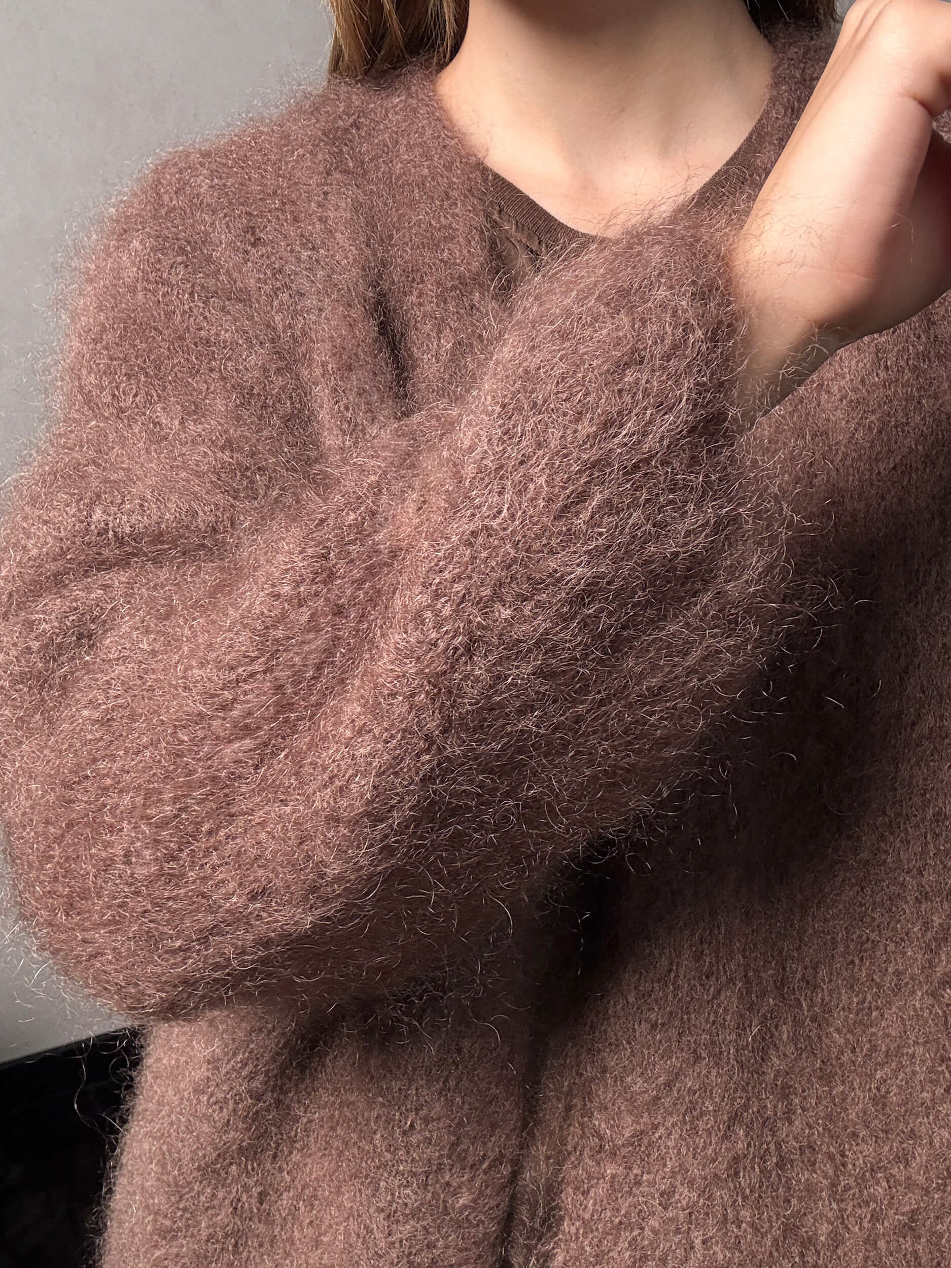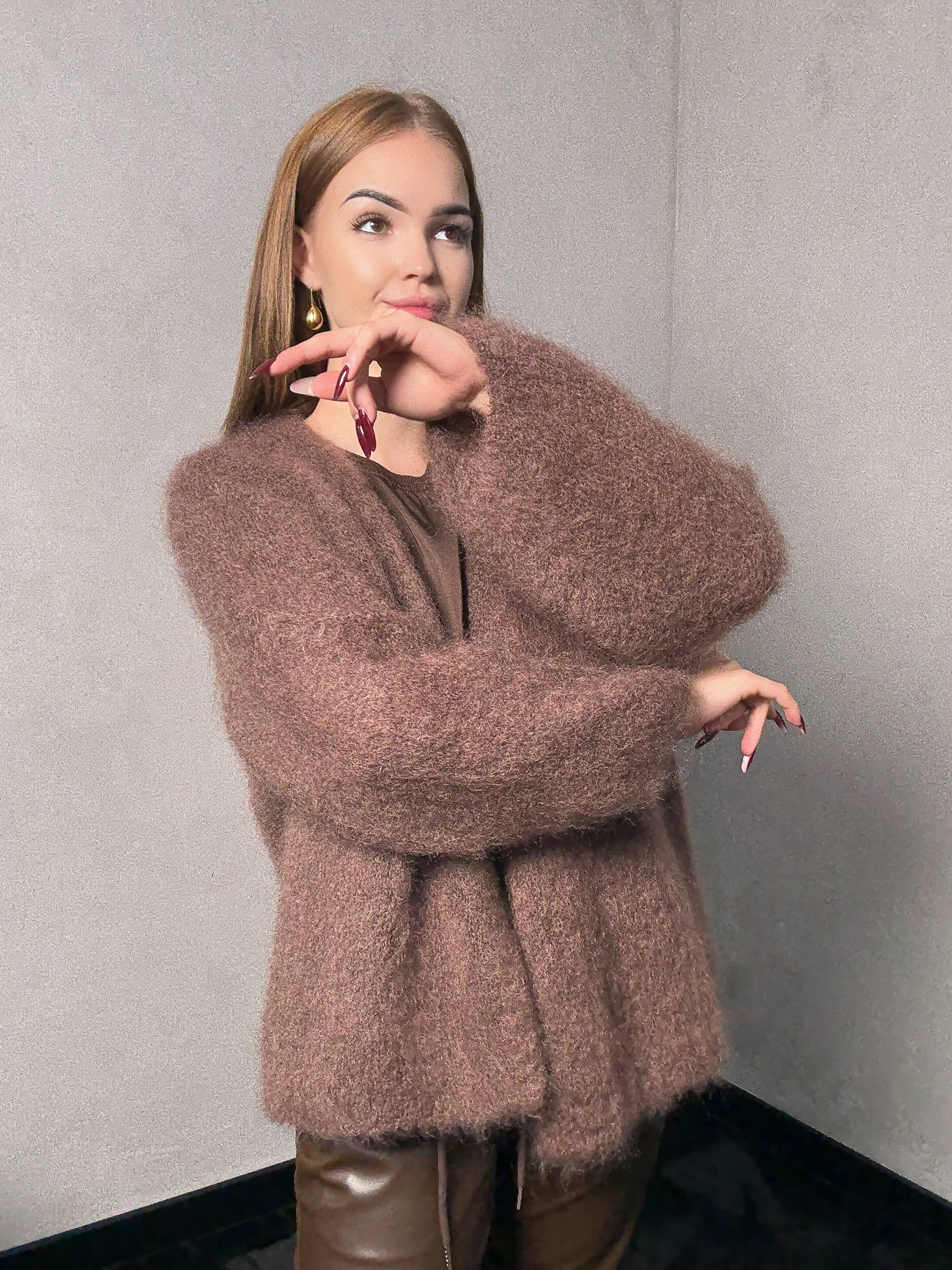 Lekki kardigan moherowy, przyjemny w dotyku i otulający. Jego miękka faktura i subtelna puszystość dodają uroku każdej stylizacji.