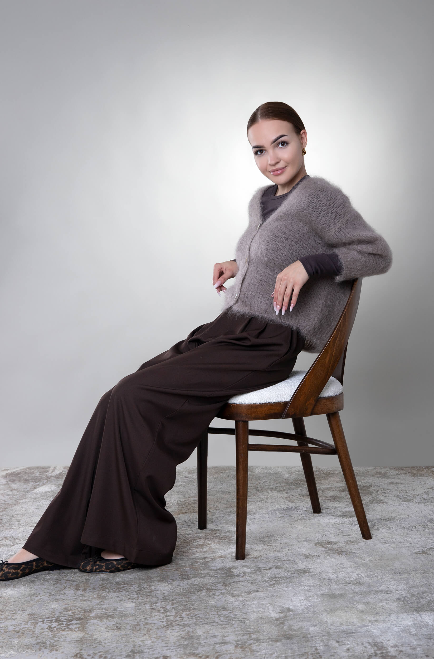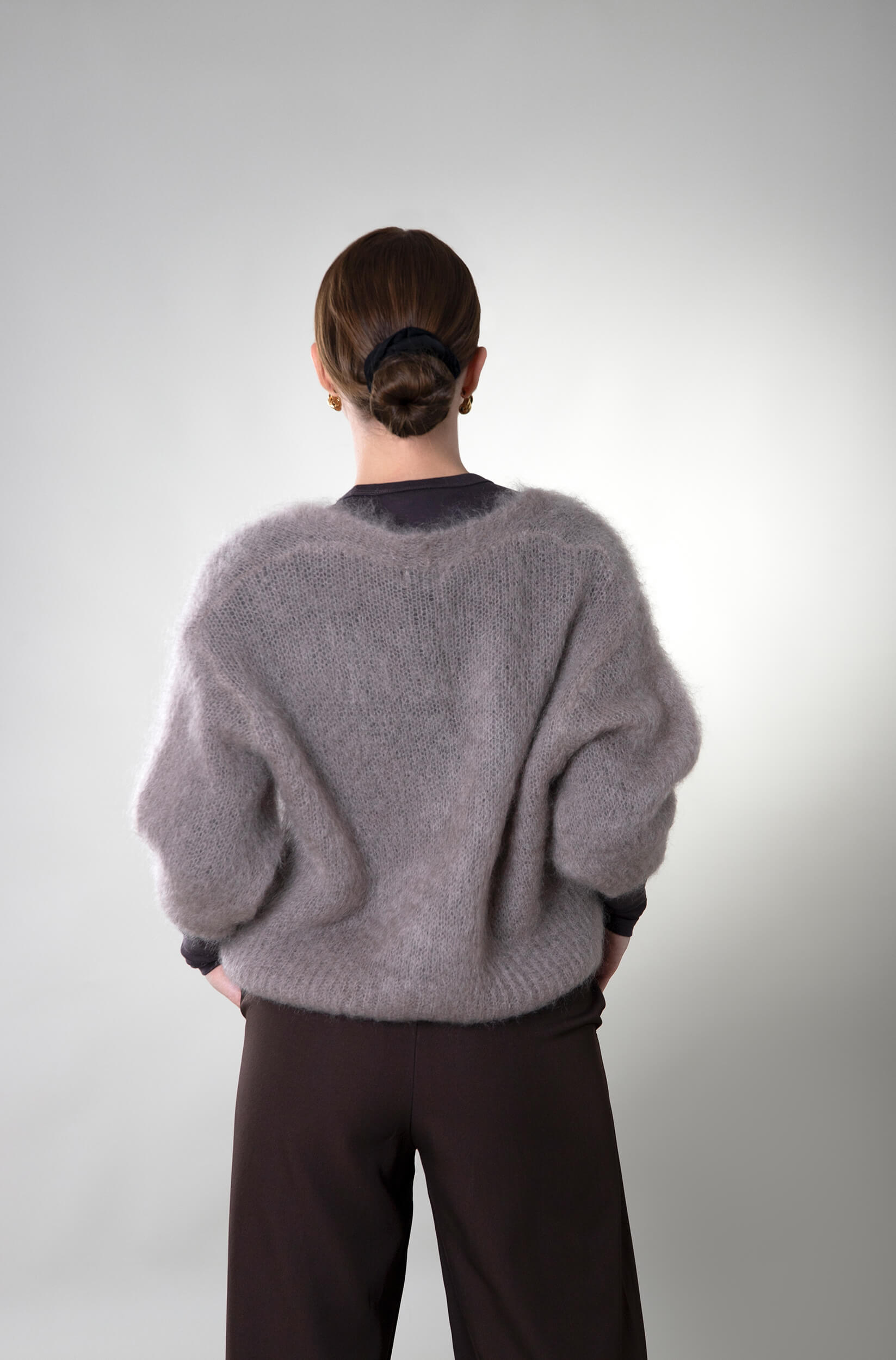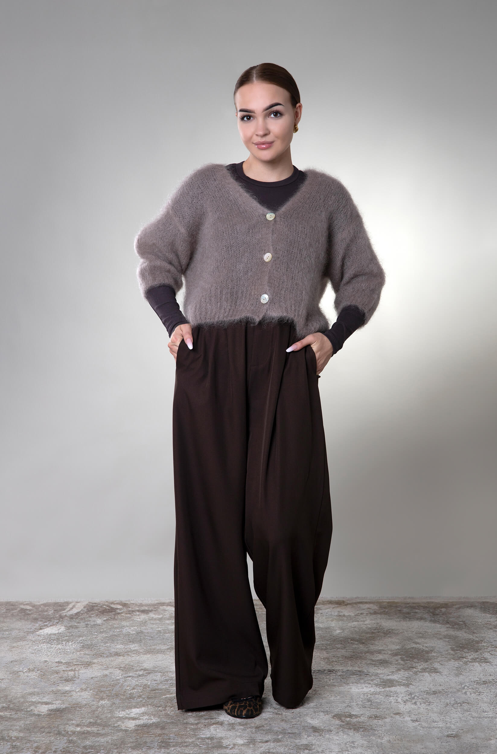 Kardigan na guziki moherowy Trani – taupe