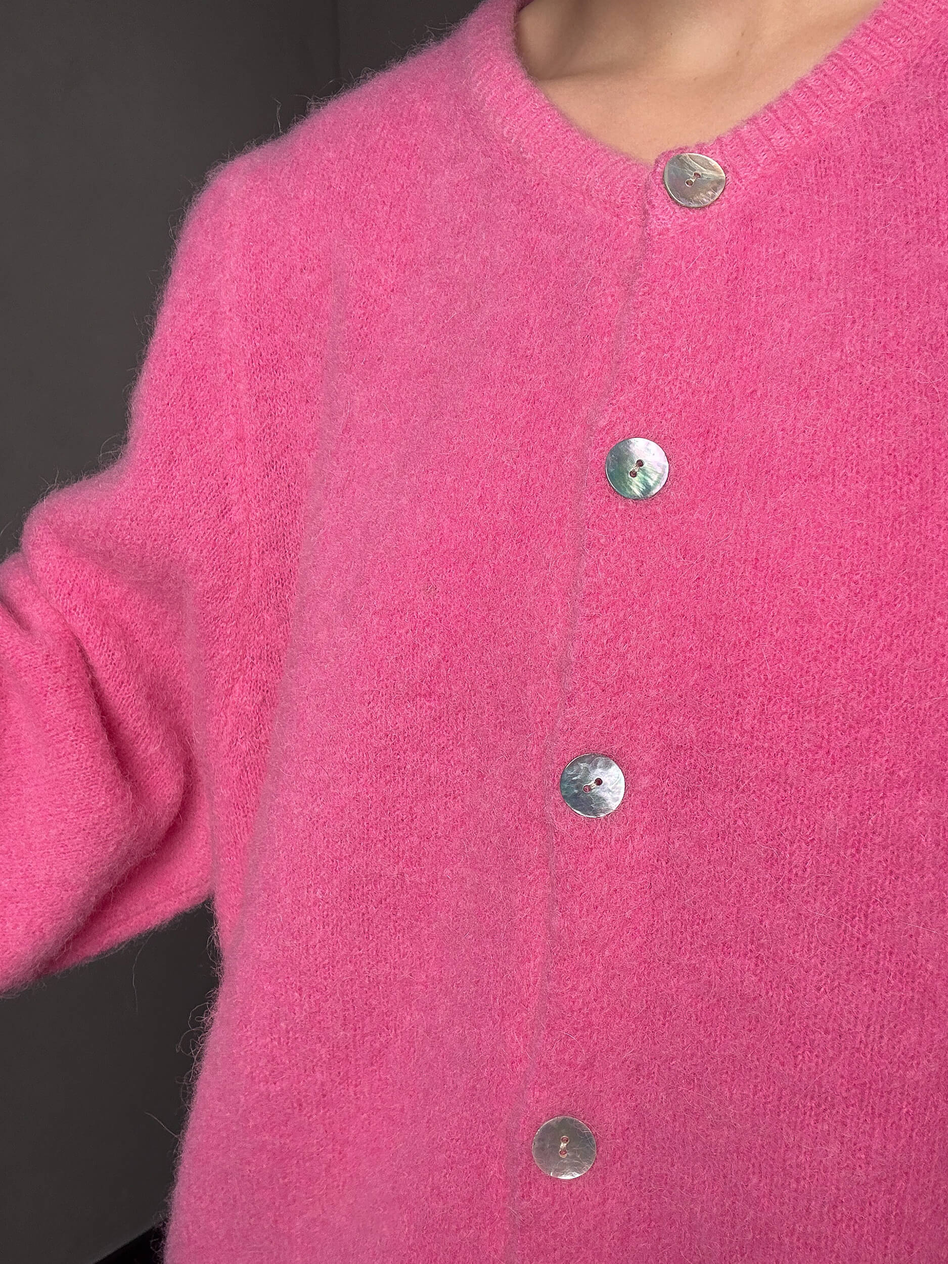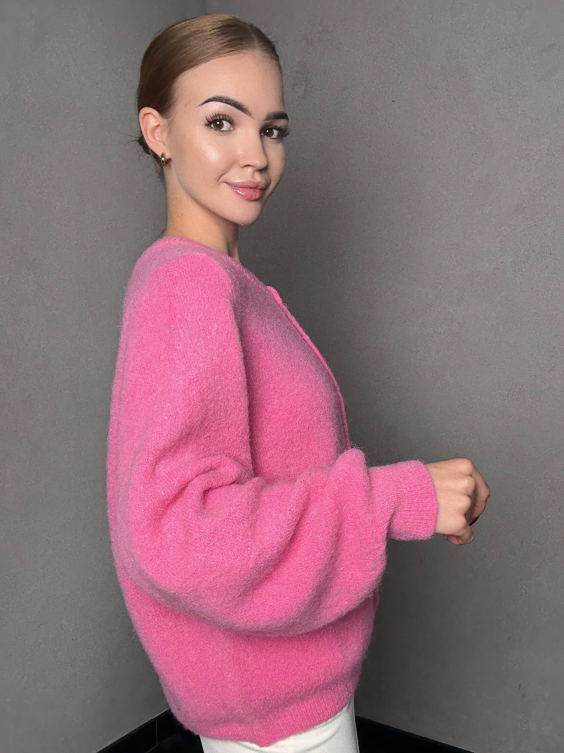 Kardigan z przędzy alpaki, charakteryzujący się wyjątkową miękkością i szlachetnym wykończeniem. Minimalistyczny, lekko oversize’owy krój z eleganckim zapięciem na guziki łączy komfort noszenia z wyrafinowanym stylem.