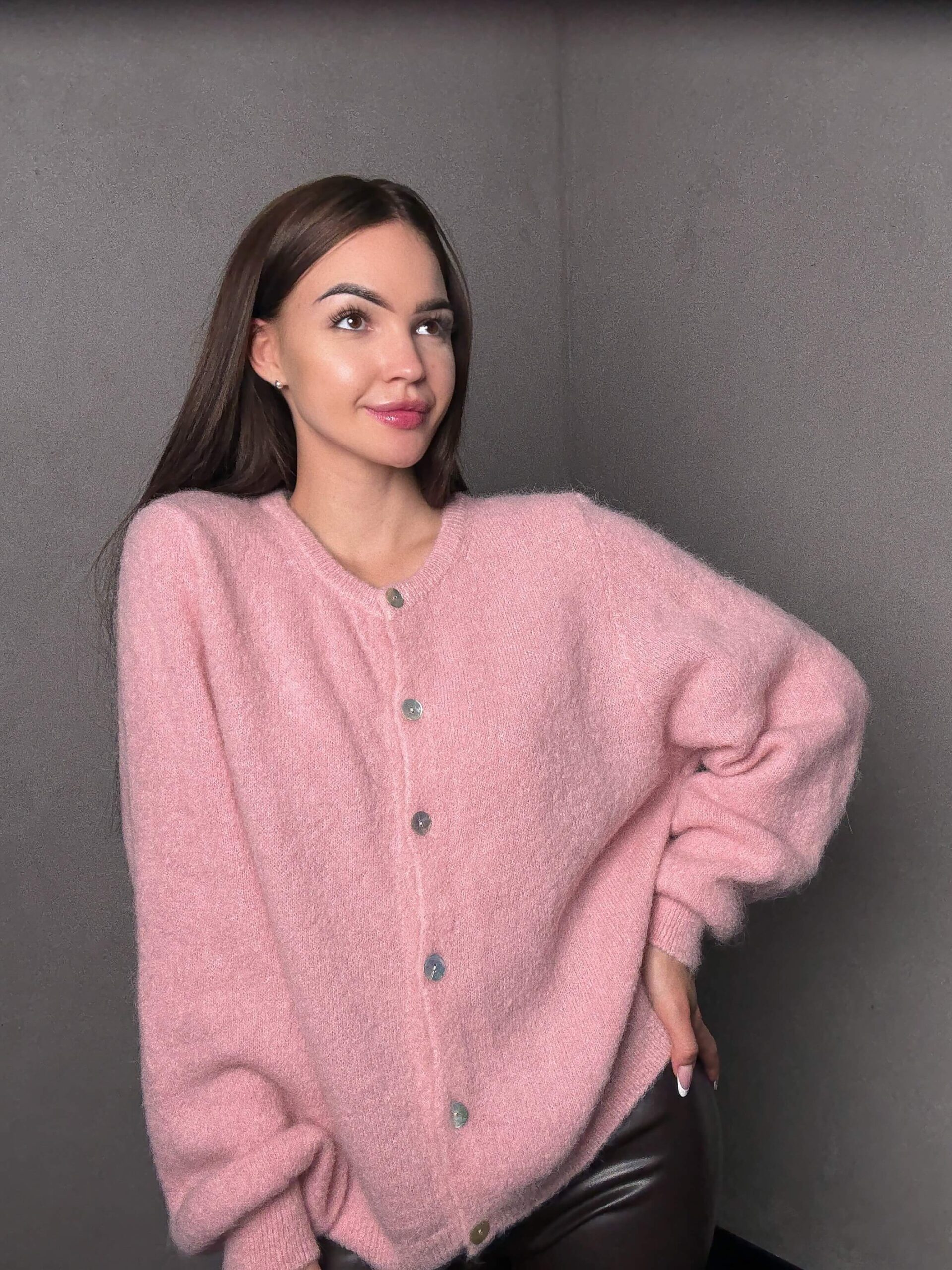 Kardigan z przędzy alpaki, charakteryzujący się wyjątkową miękkością i szlachetnym wykończeniem. Minimalistyczny, lekko oversize’owy krój z eleganckim zapięciem na guziki łączy komfort noszenia z wyrafinowanym stylem.