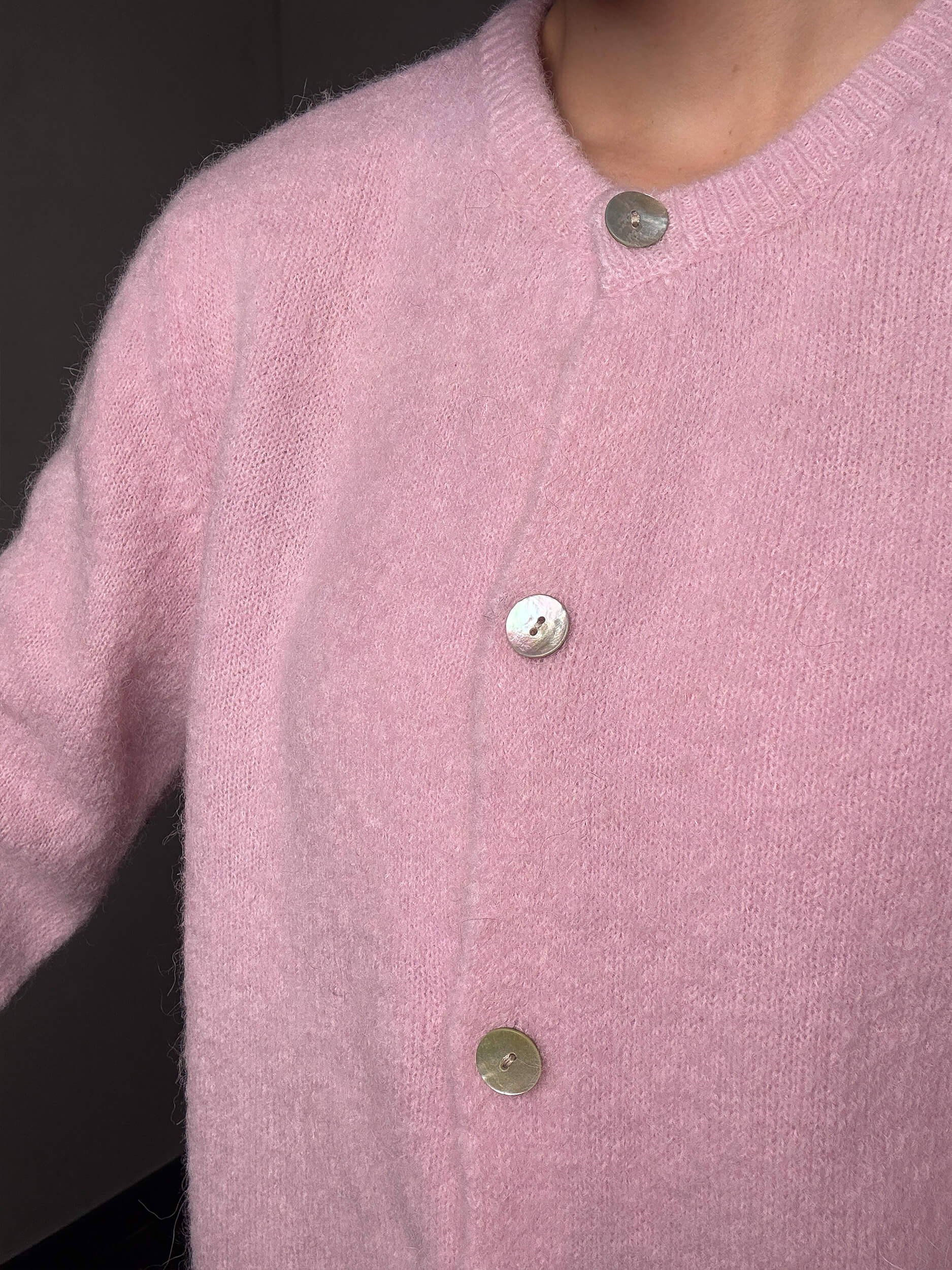 Kardigan z przędzy alpaki, charakteryzujący się wyjątkową miękkością i szlachetnym wykończeniem. Minimalistyczny, o krótszym kroju z eleganckim zapięciem na guziki łączy komfort noszenia z wyrafinowanym stylem.