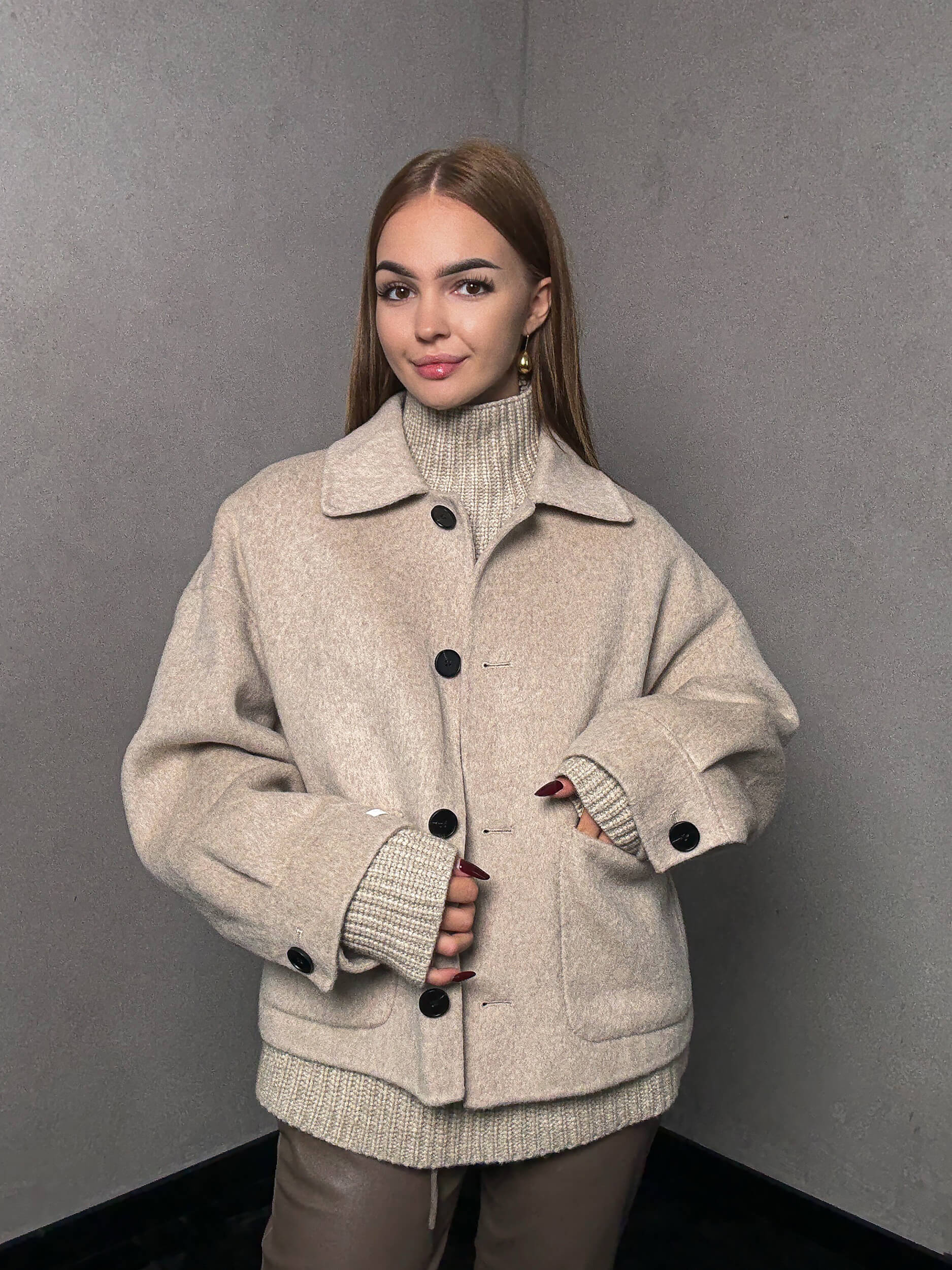 Kurtka na guziki z dodatkiem kaszmiru Lecce – beżowa
