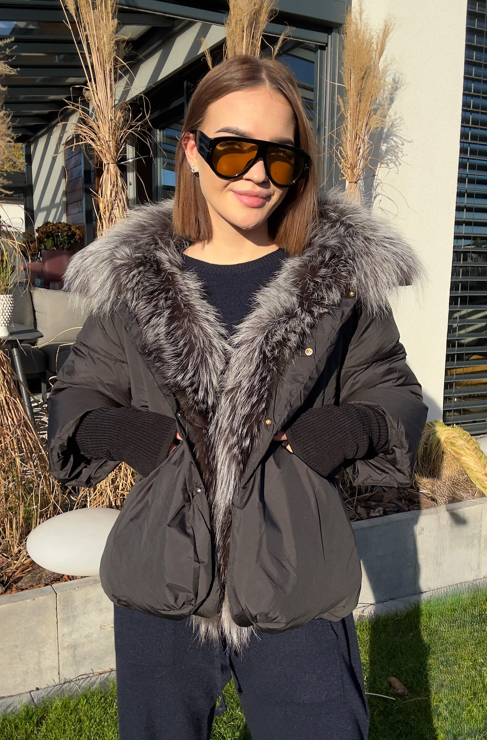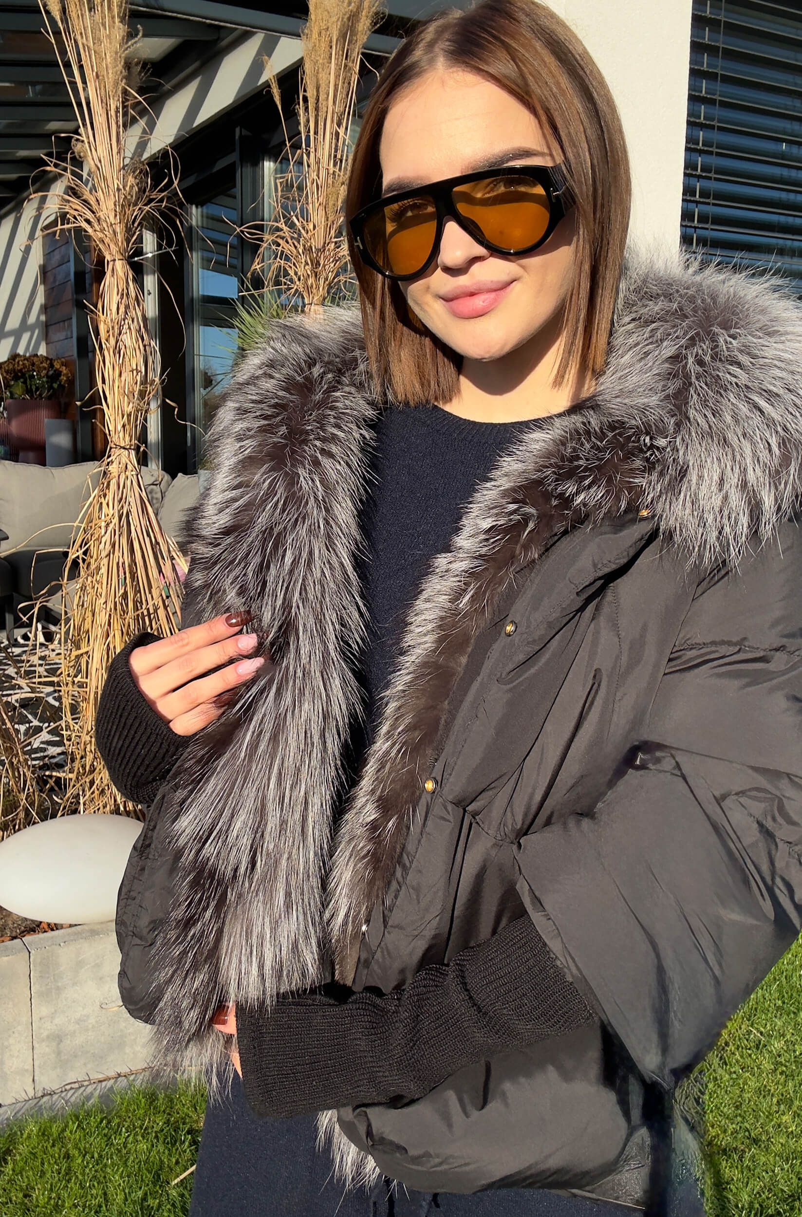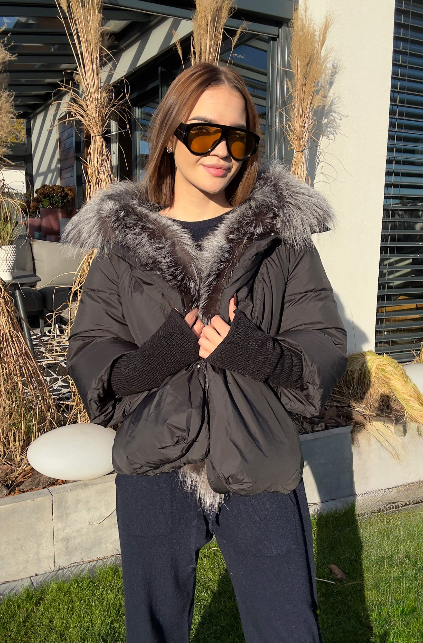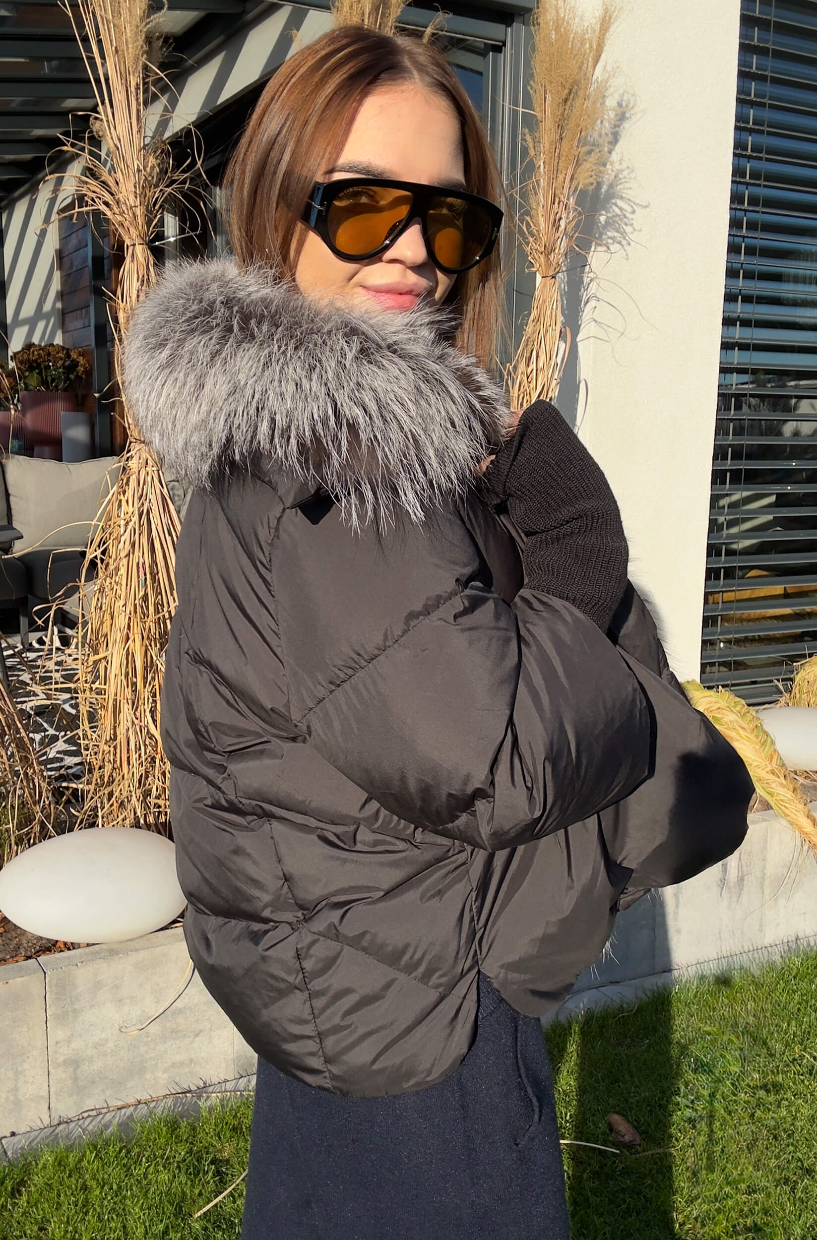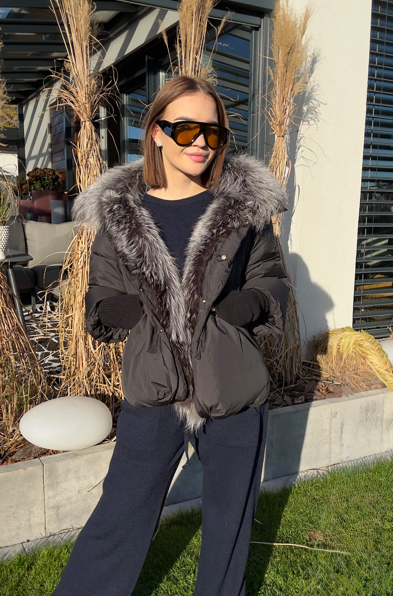 Kurtka puchowa z naturalnym futrem Portofino- czarna