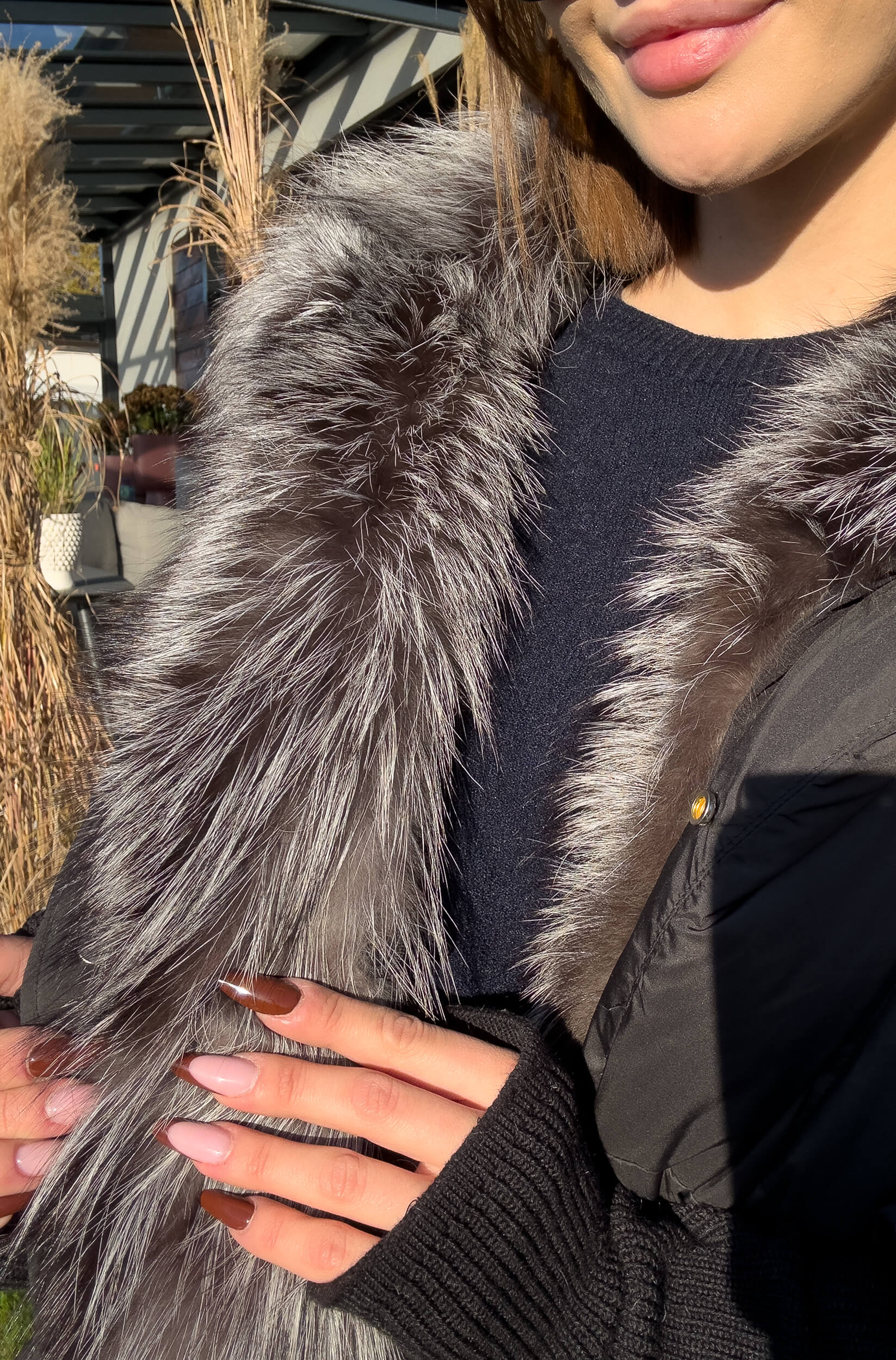 Stylowa kurtka z naturalnym futrem puchowa, które można łatwo odpiąć w zależności od pogody i okazji. Model wyposażony w praktyczne kieszenie oraz ściągacze na rękawach, zapewniające idealne dopasowanie i ochronę przed chłodem. Ciepła, komfortowa i elegancka — perfekcyjna na chłodne dni.