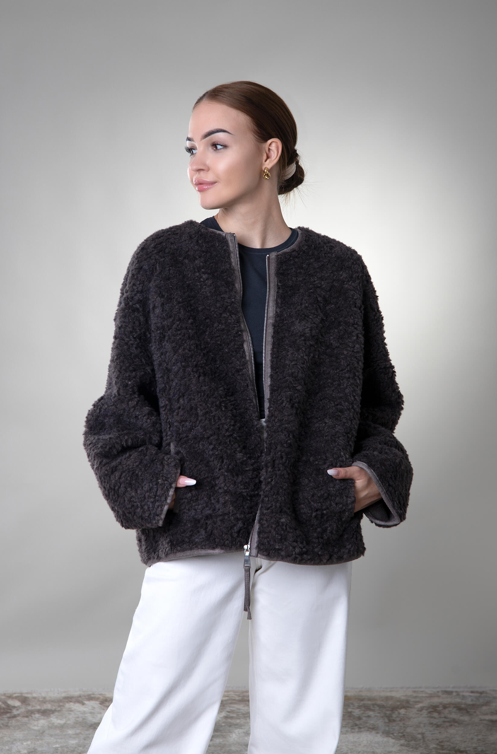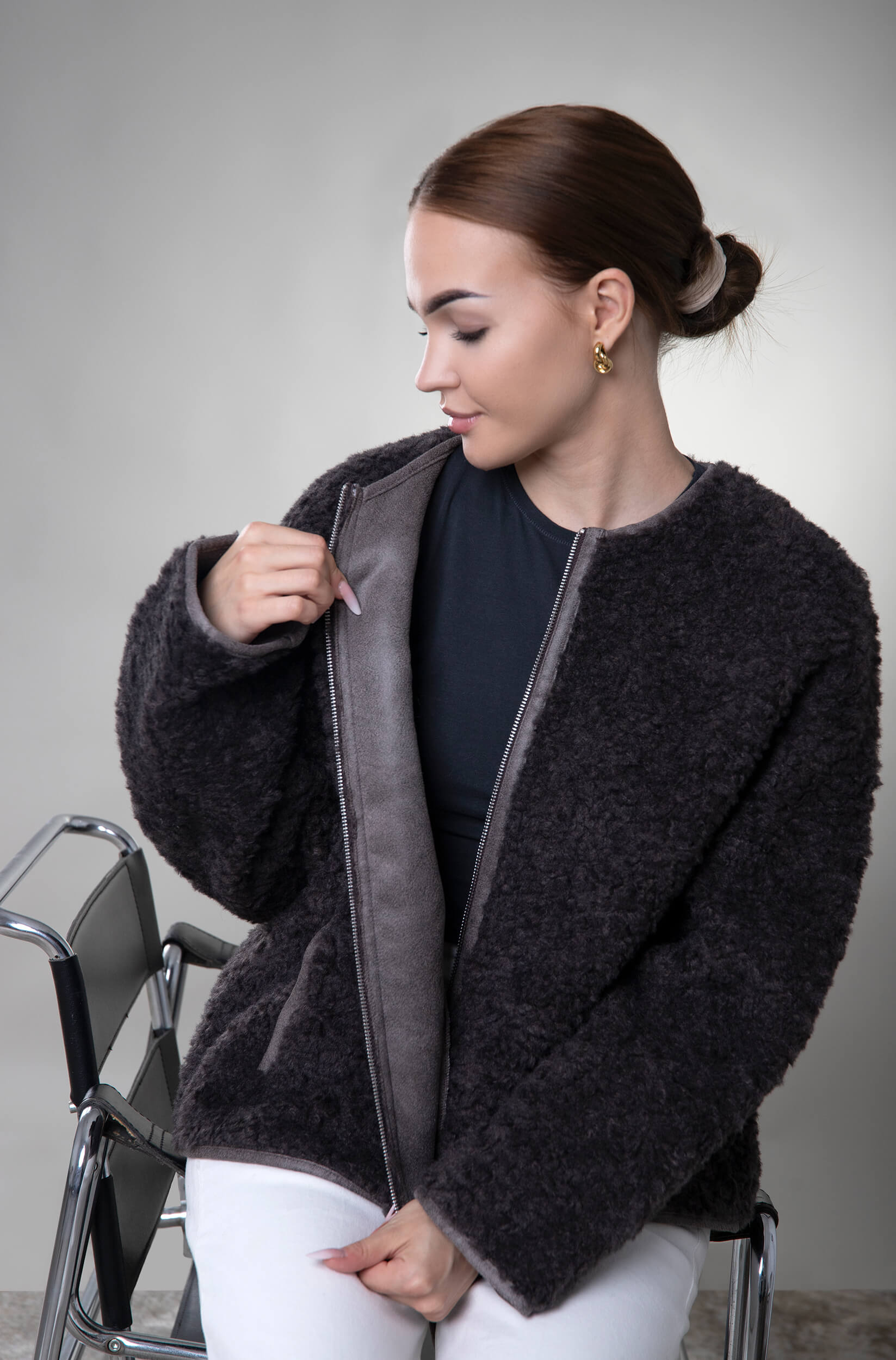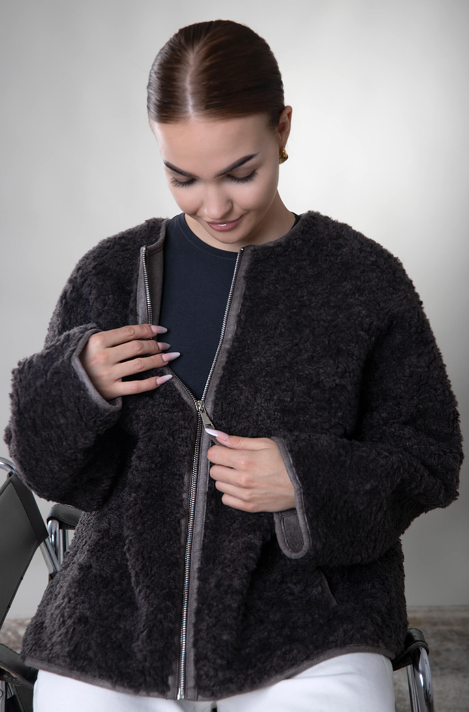Kurtka „Mia”wykonana z miękkiego, puszystego materiału, posiada praktyczne kieszenie i wygodne zapięcie na zamek. Jej minimalistyczny krój sprawdzi się zarówno w codziennych, jak i bardziej casualowych stylizacjach.