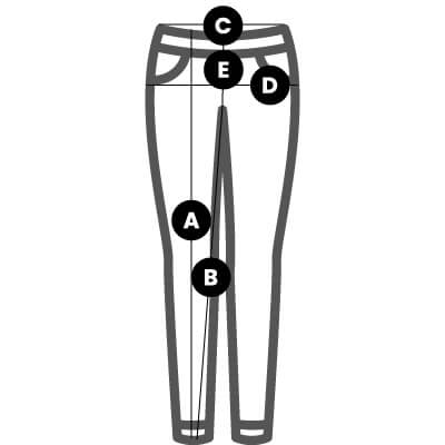 - B - długość od nogawki do kroku