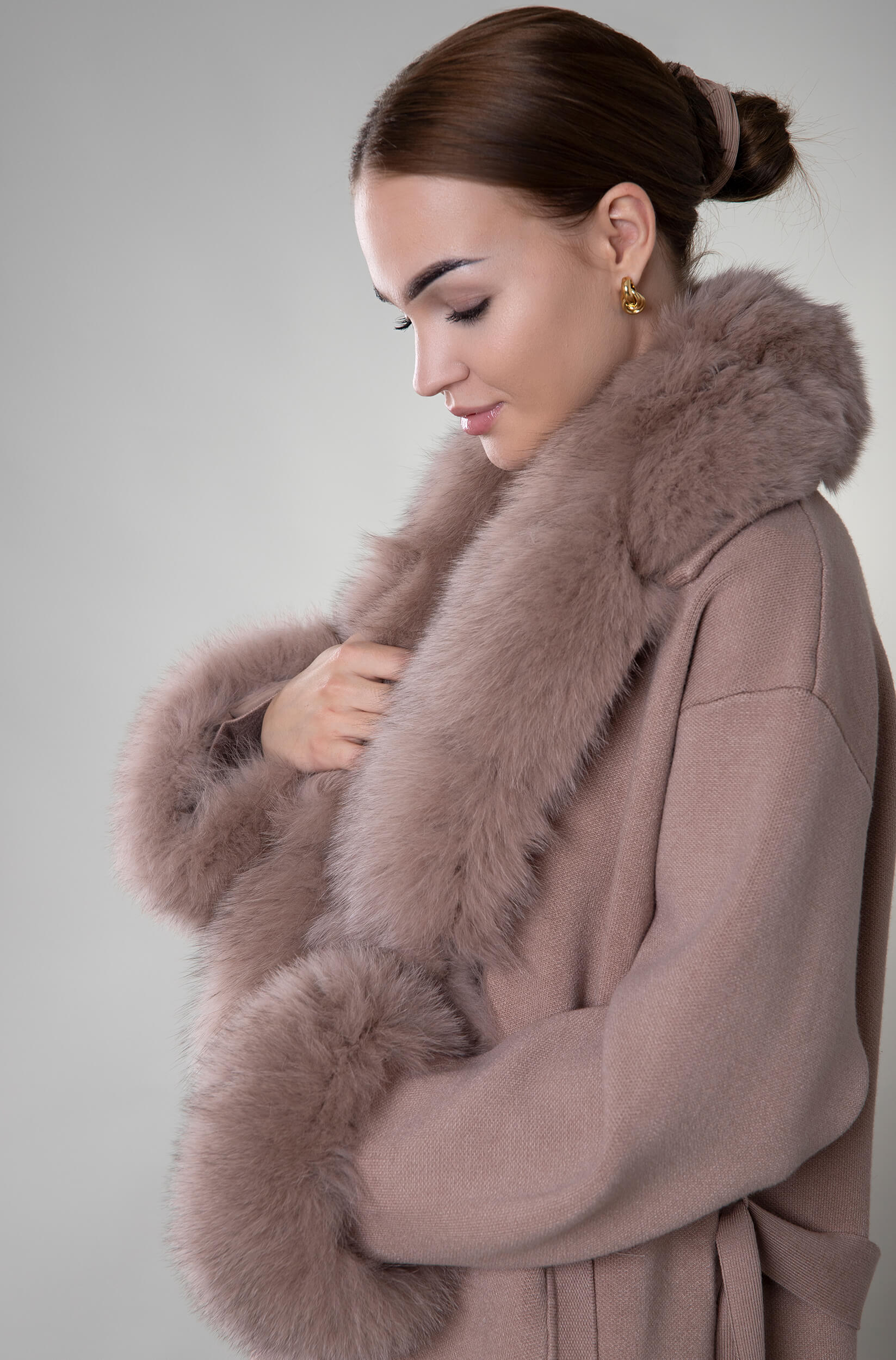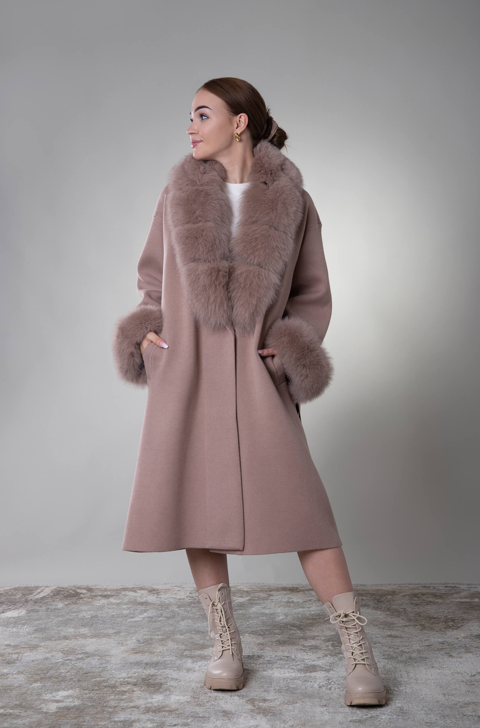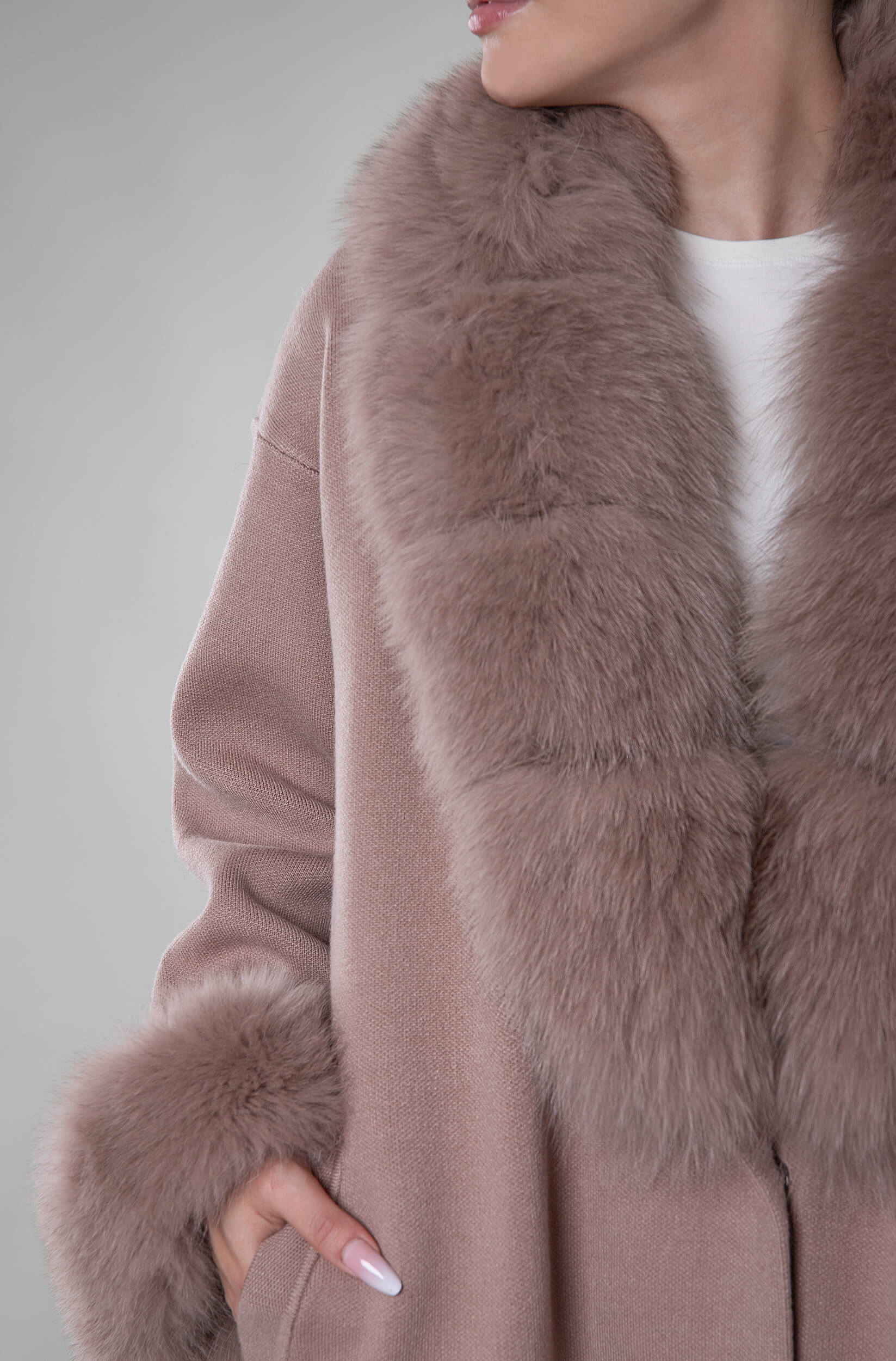 Płaszcz z naturalnym futrem Siena – taupe