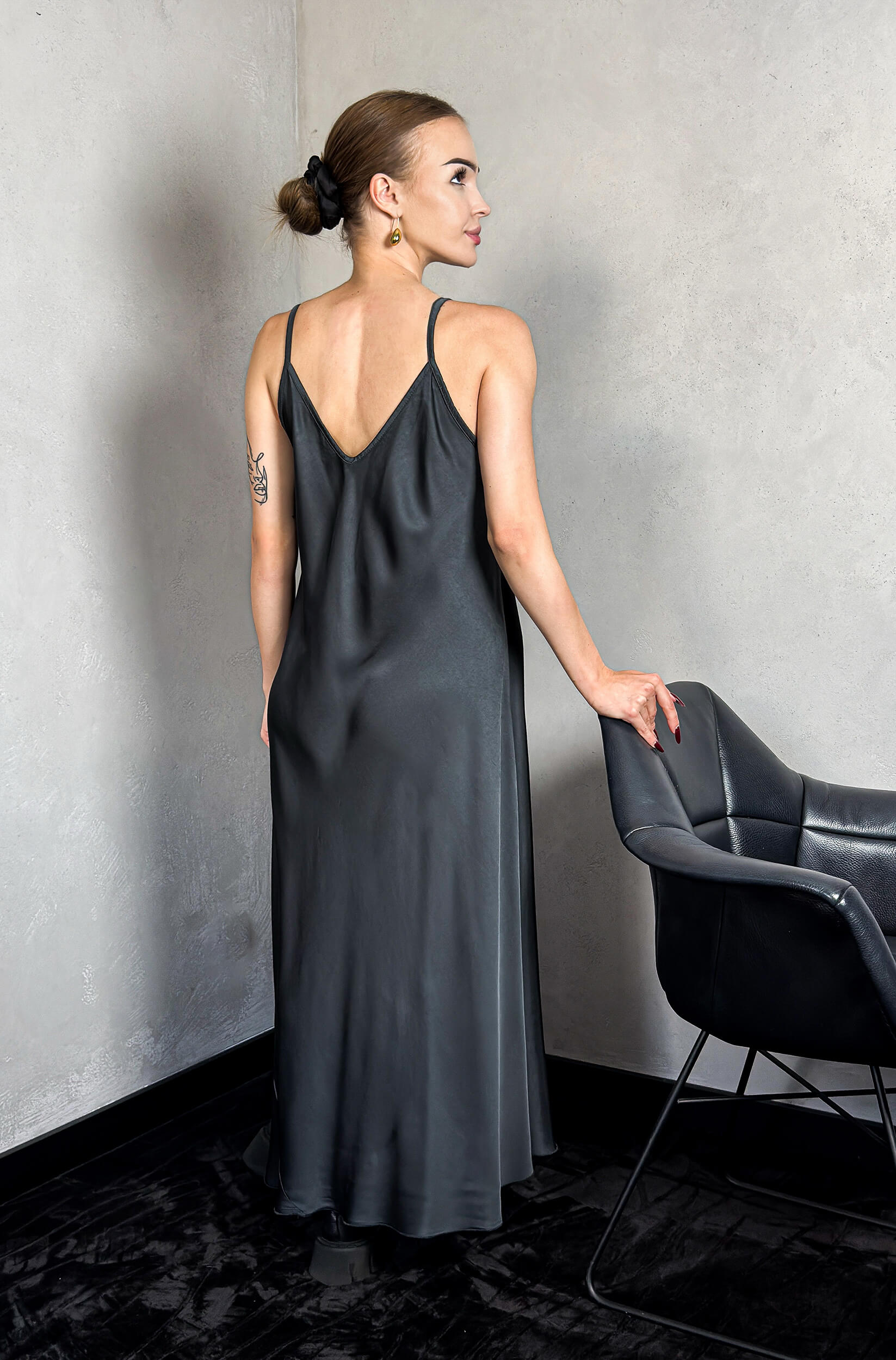 Elegancka i kobieca sukienka na ramiączkach, uszyta z delikatnej, lejącej się wiskozy. Dzięki lekkiemu materiałowi pięknie układa się na sylwetce, podkreślając jej naturalne linie i dodając subtelnego blasku.