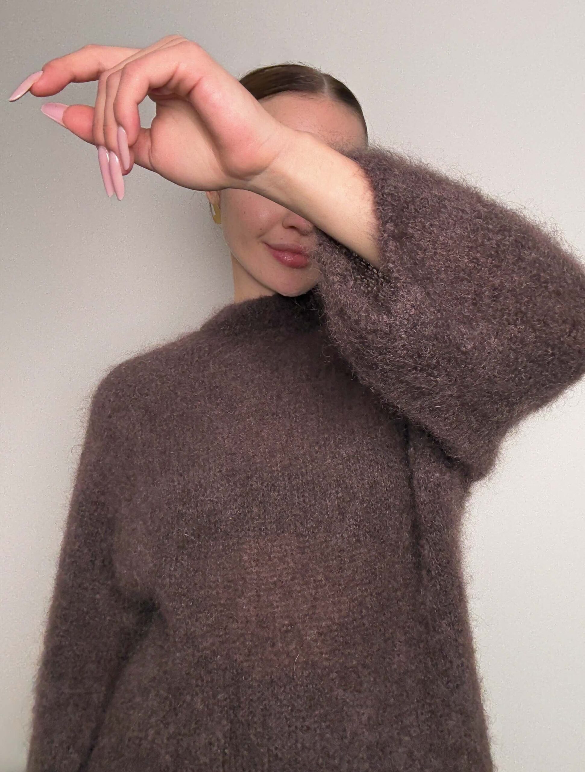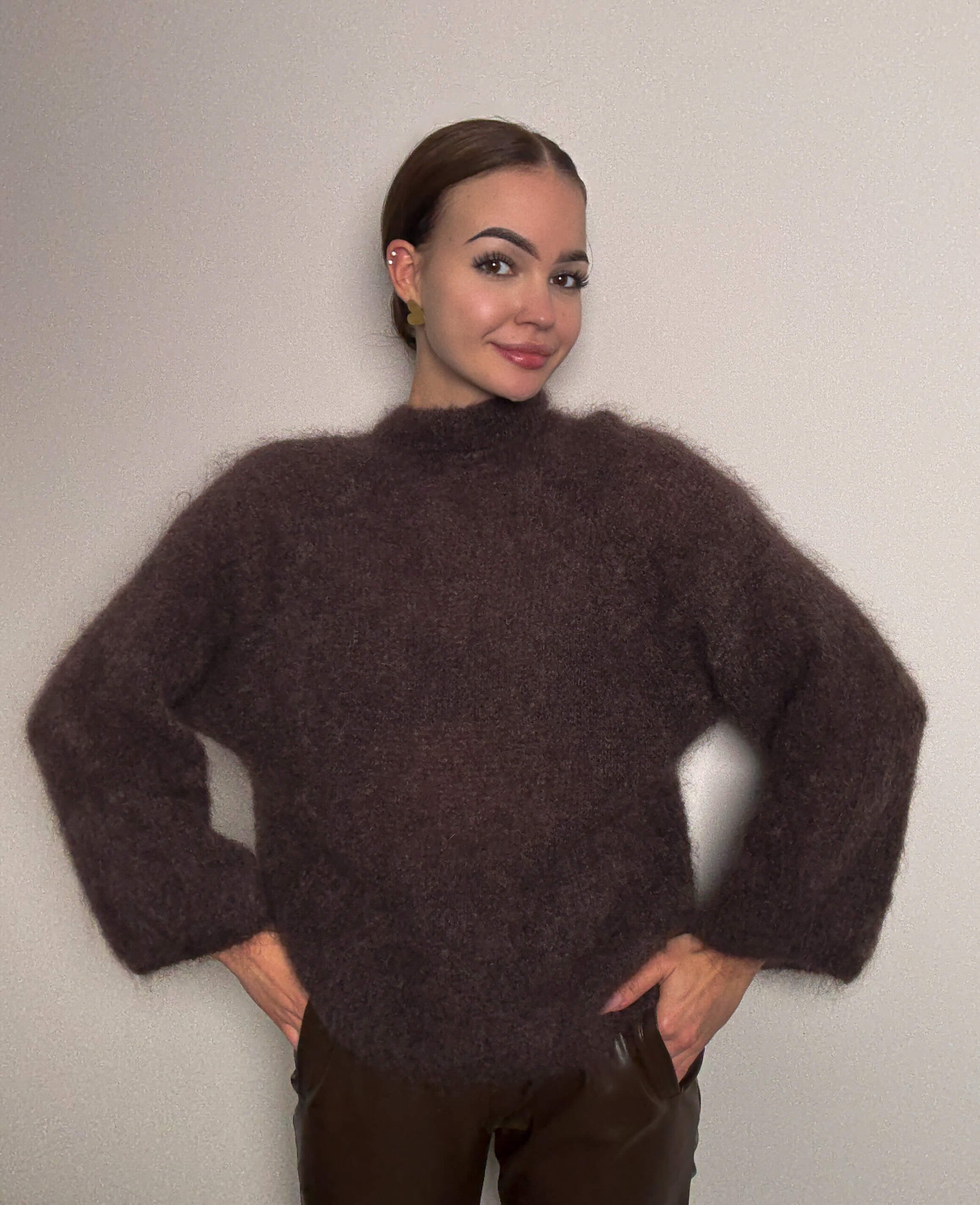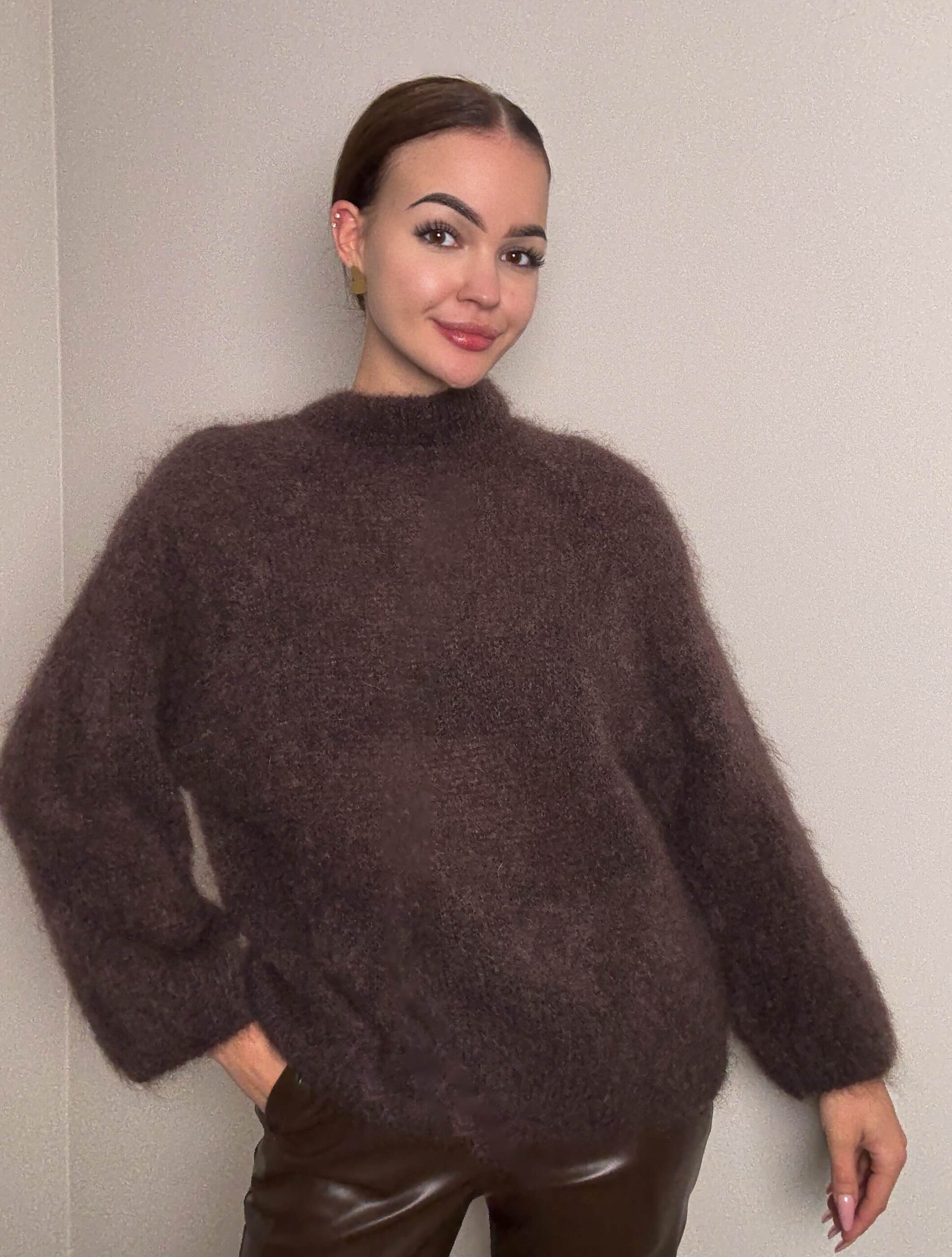 Sweter z wysokogatunkowego moheru o puszystej fakturze. Klasyczny fason z długim rękawem, łączy elegancję z komfortem noszenia.