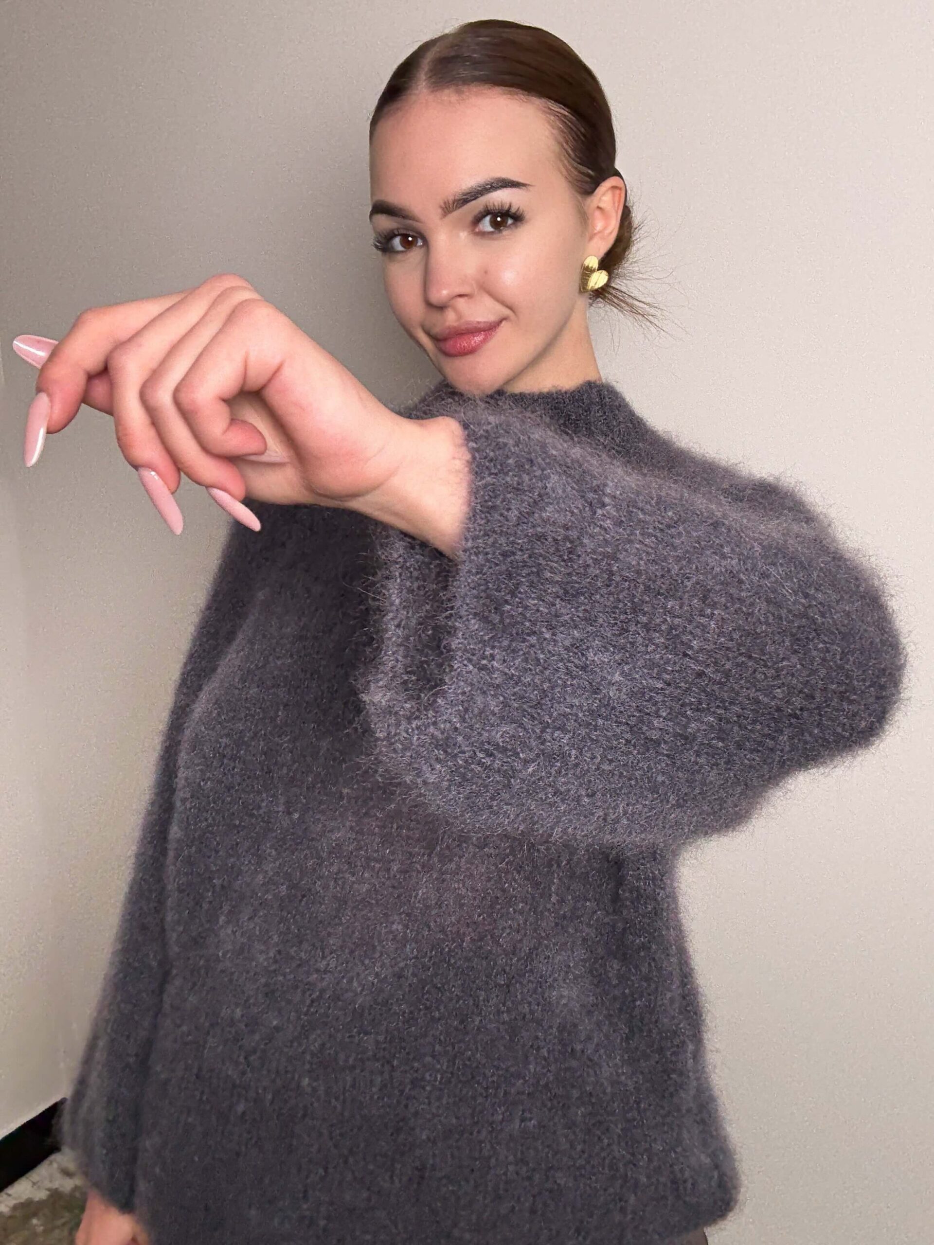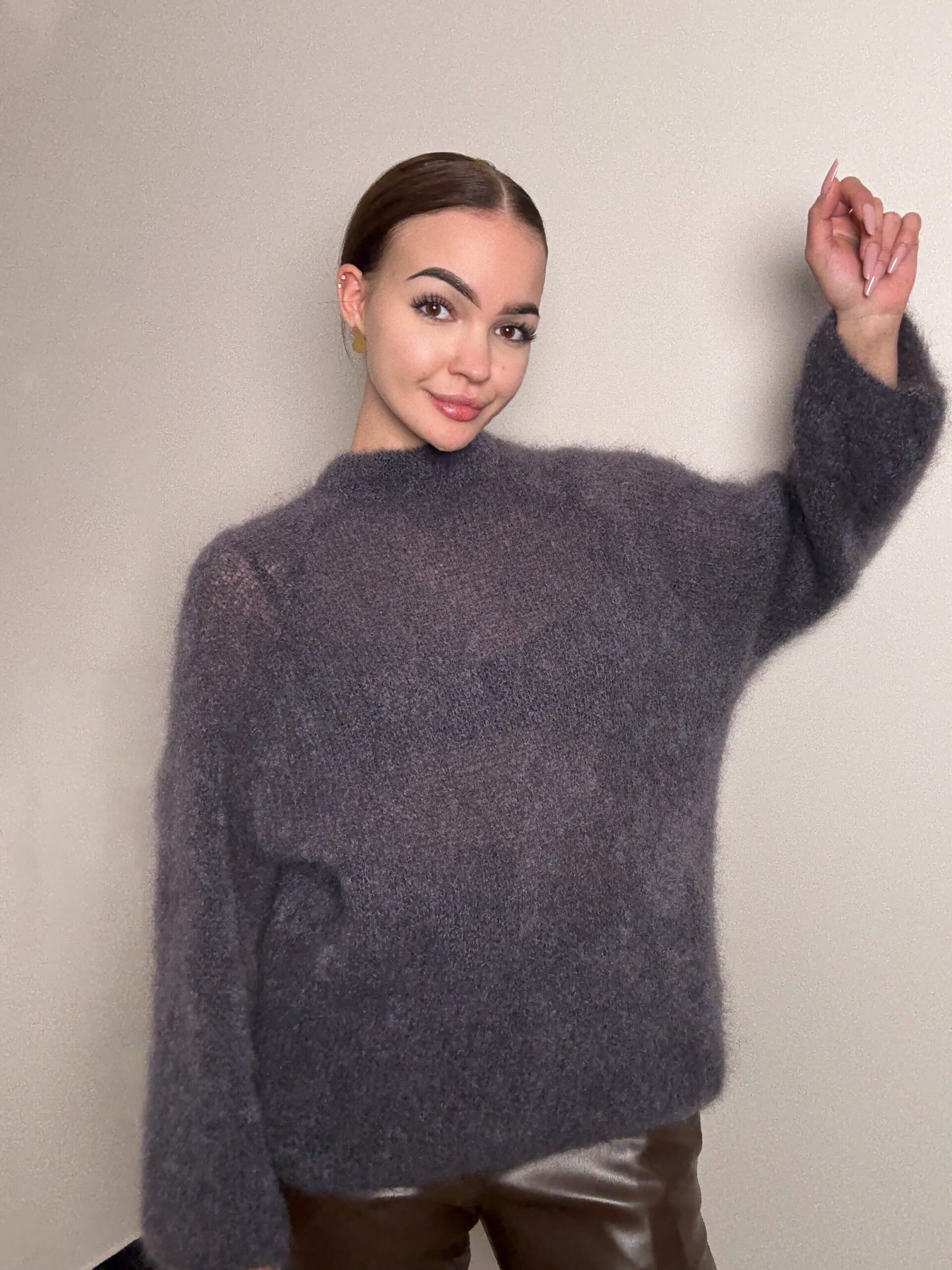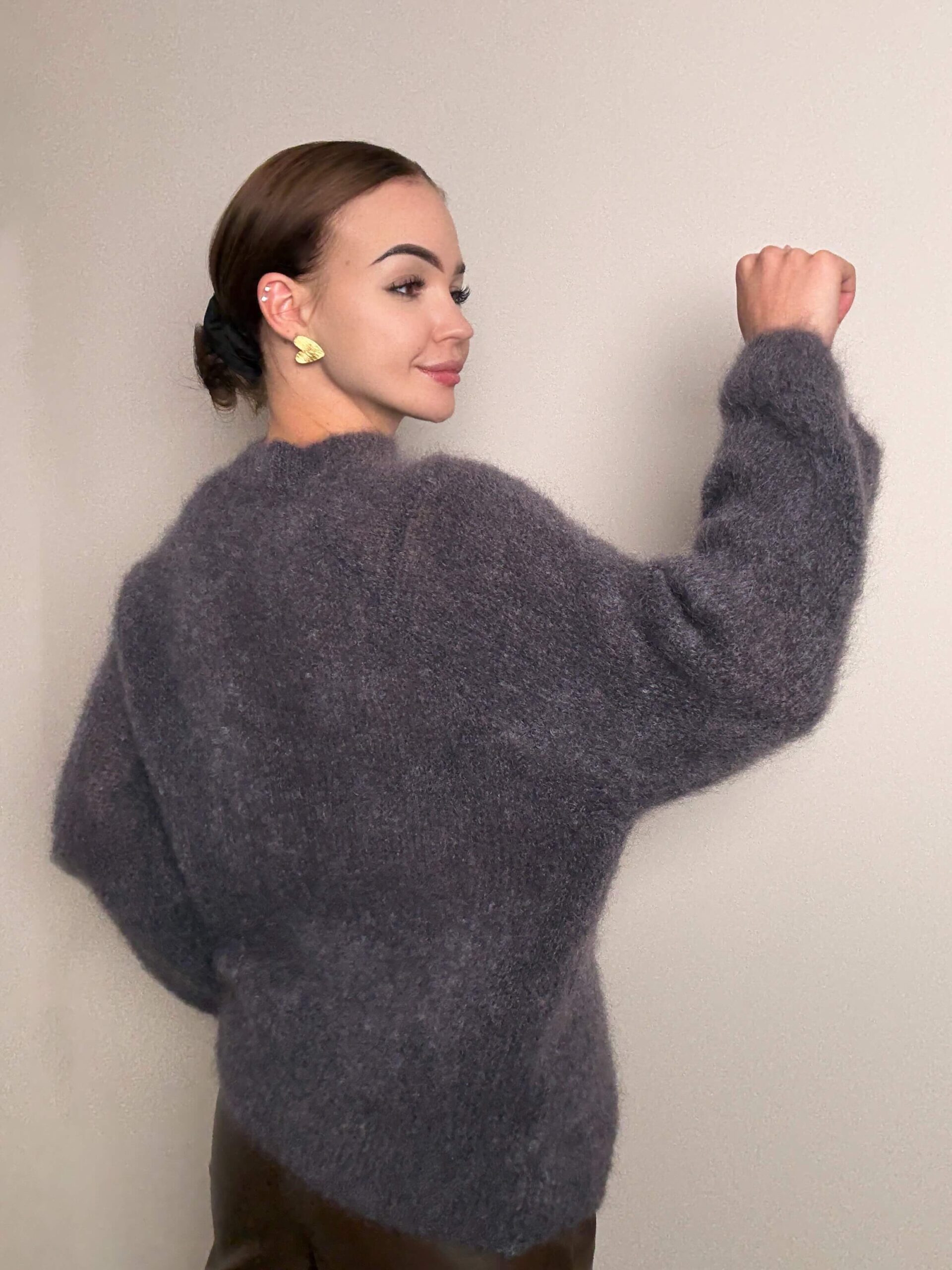 Sweter z wysokogatunkowego moheru o puszystej fakturze. Klasyczny fason z długim rękawem, łączy elegancję z komfortem noszenia.
