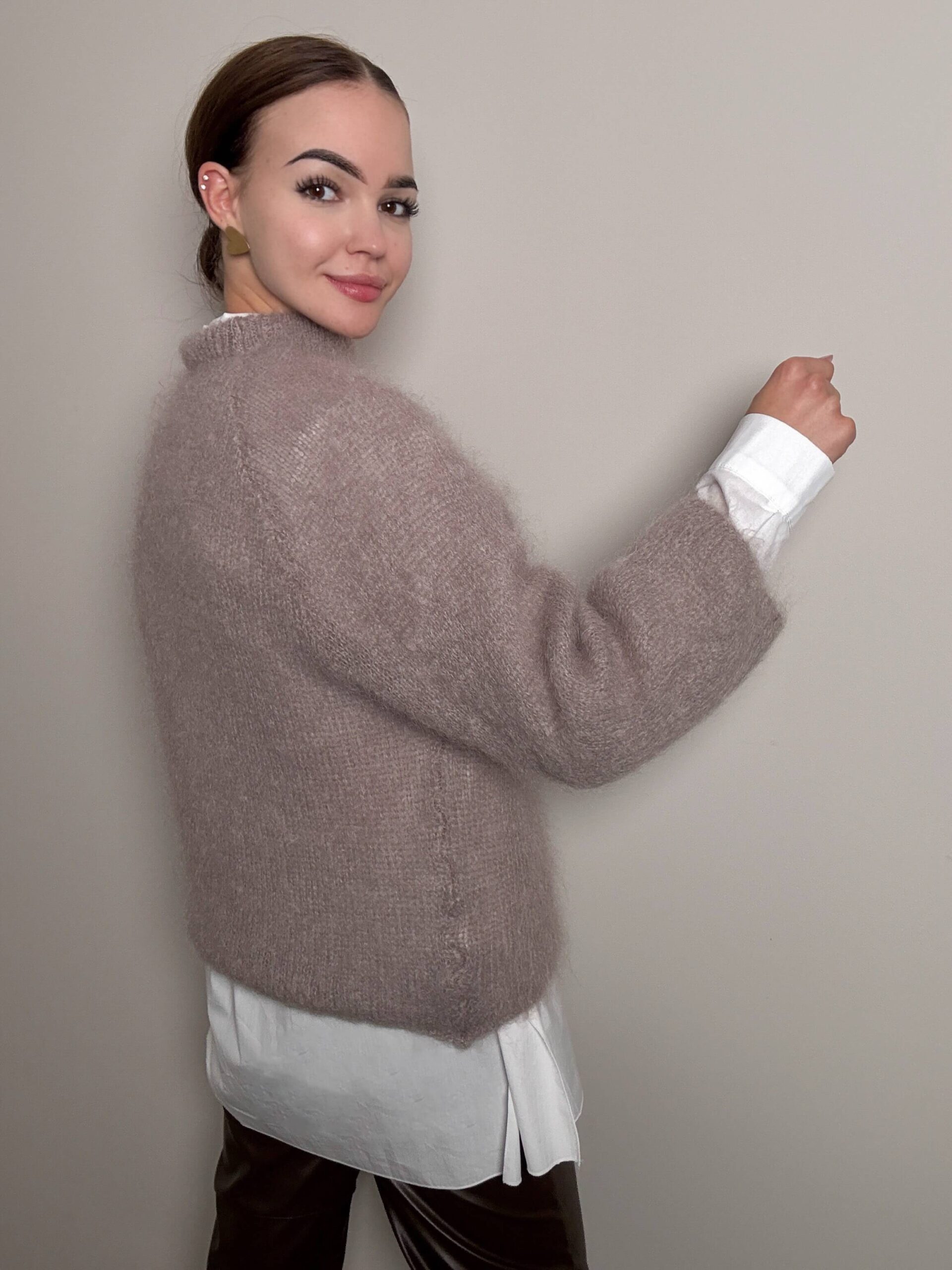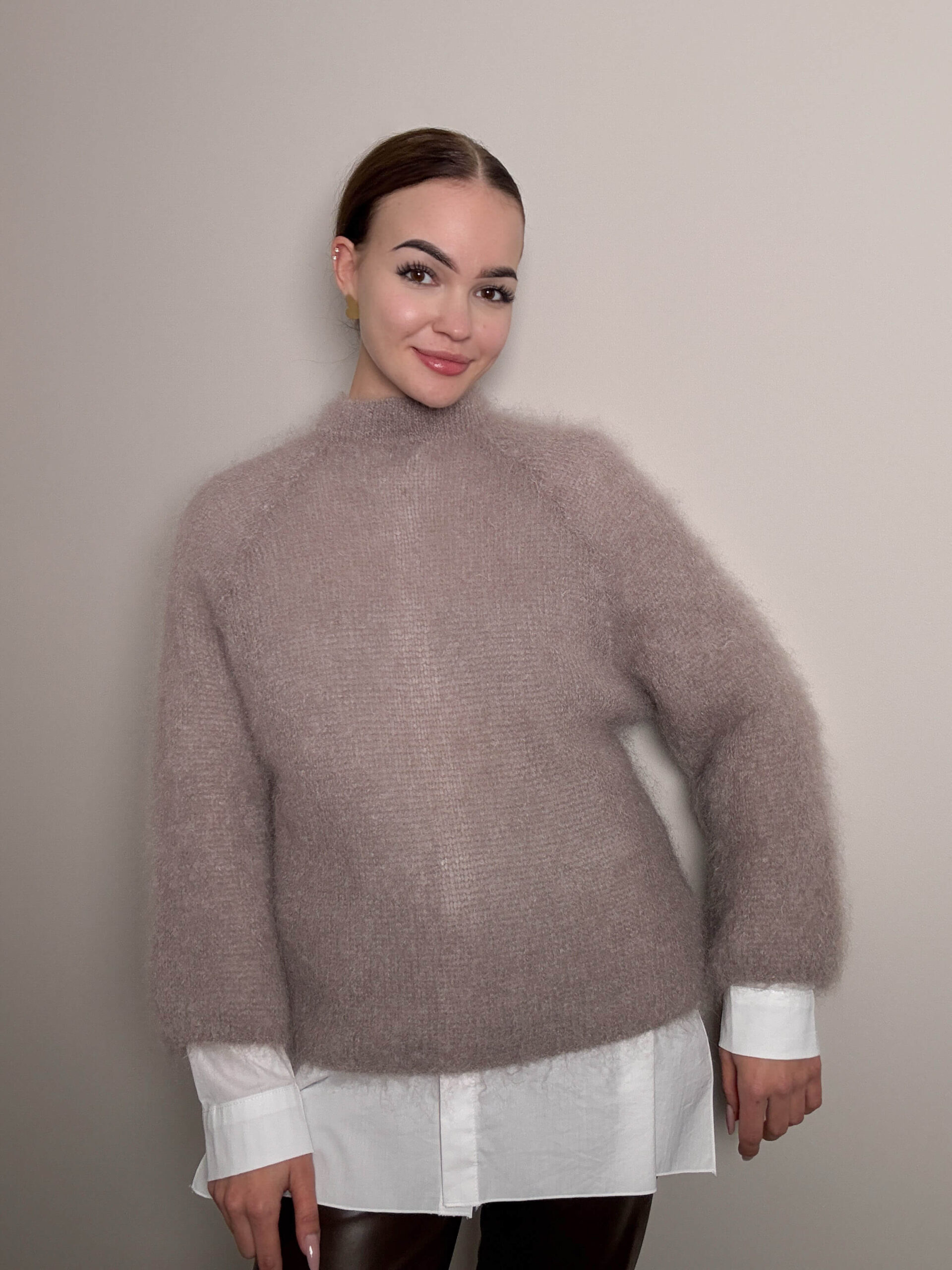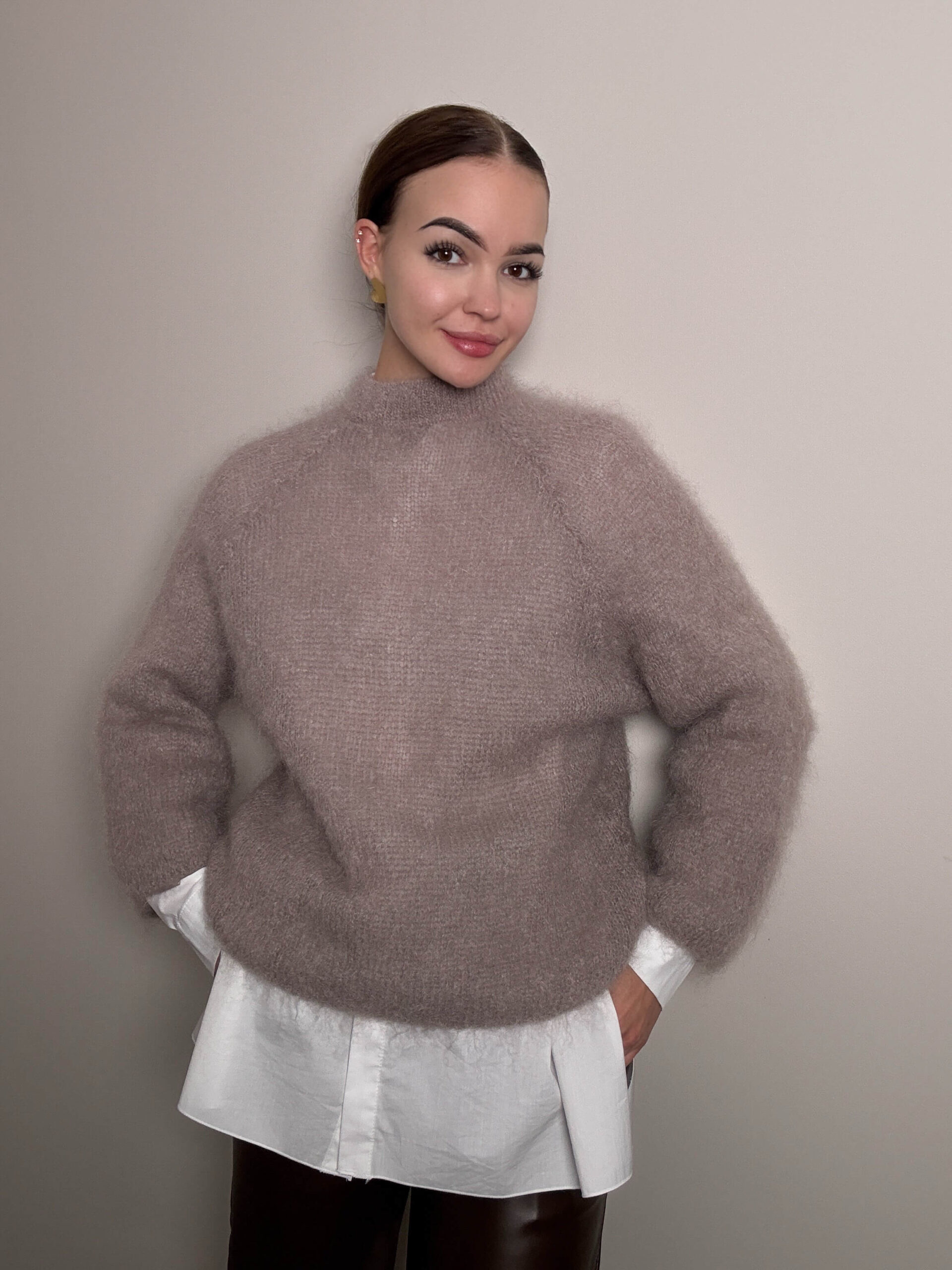 Sweter z wysokogatunkowego moheru o puszystej fakturze. Klasyczny fason z długim rękawem, łączy elegancję z komfortem noszenia.