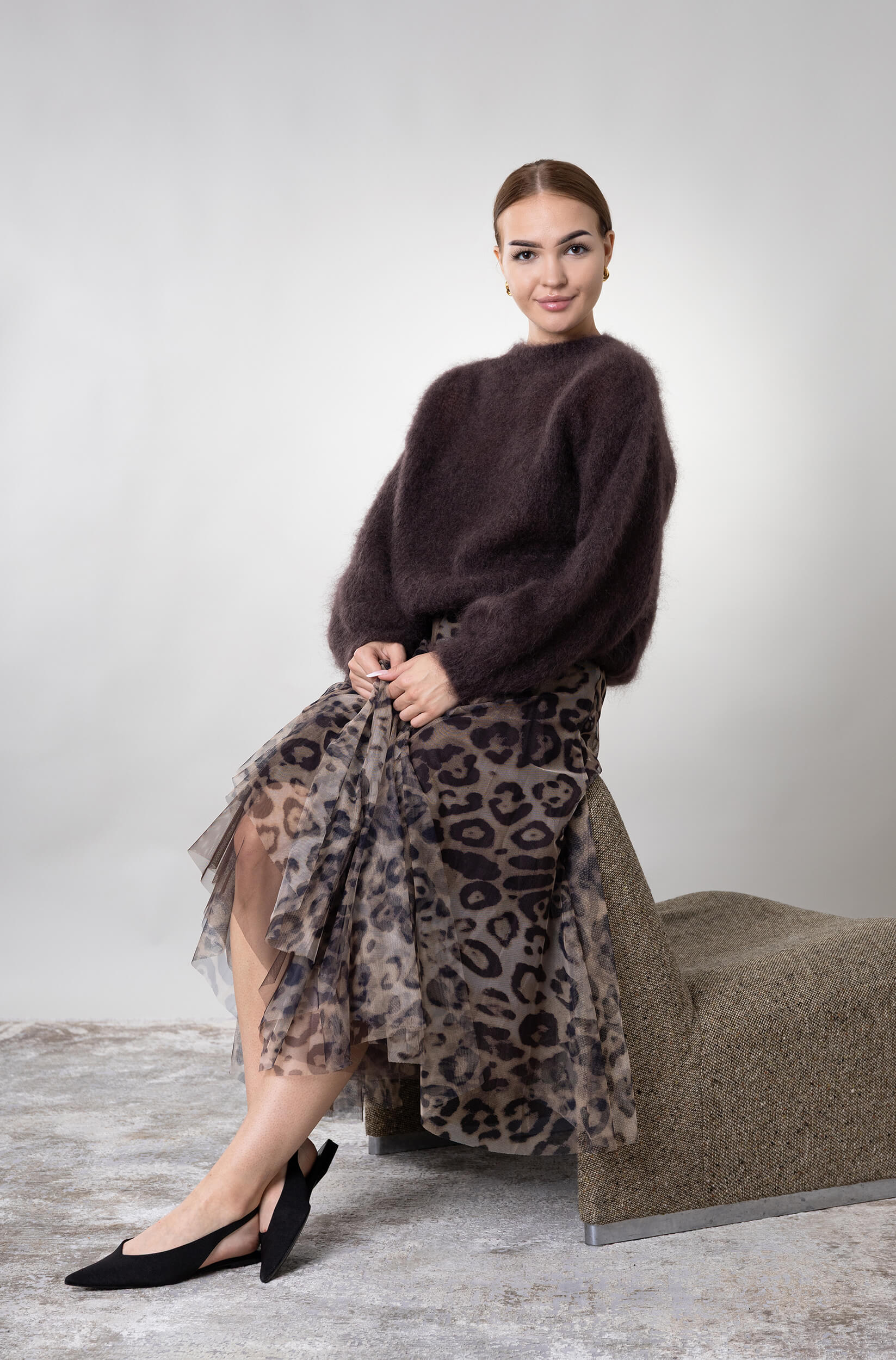 Sweter z wysokogatunkowego moheru o puszystej fakturze. Klasyczny fason z długim rękawem, łączy elegancję z komfortem noszenia.