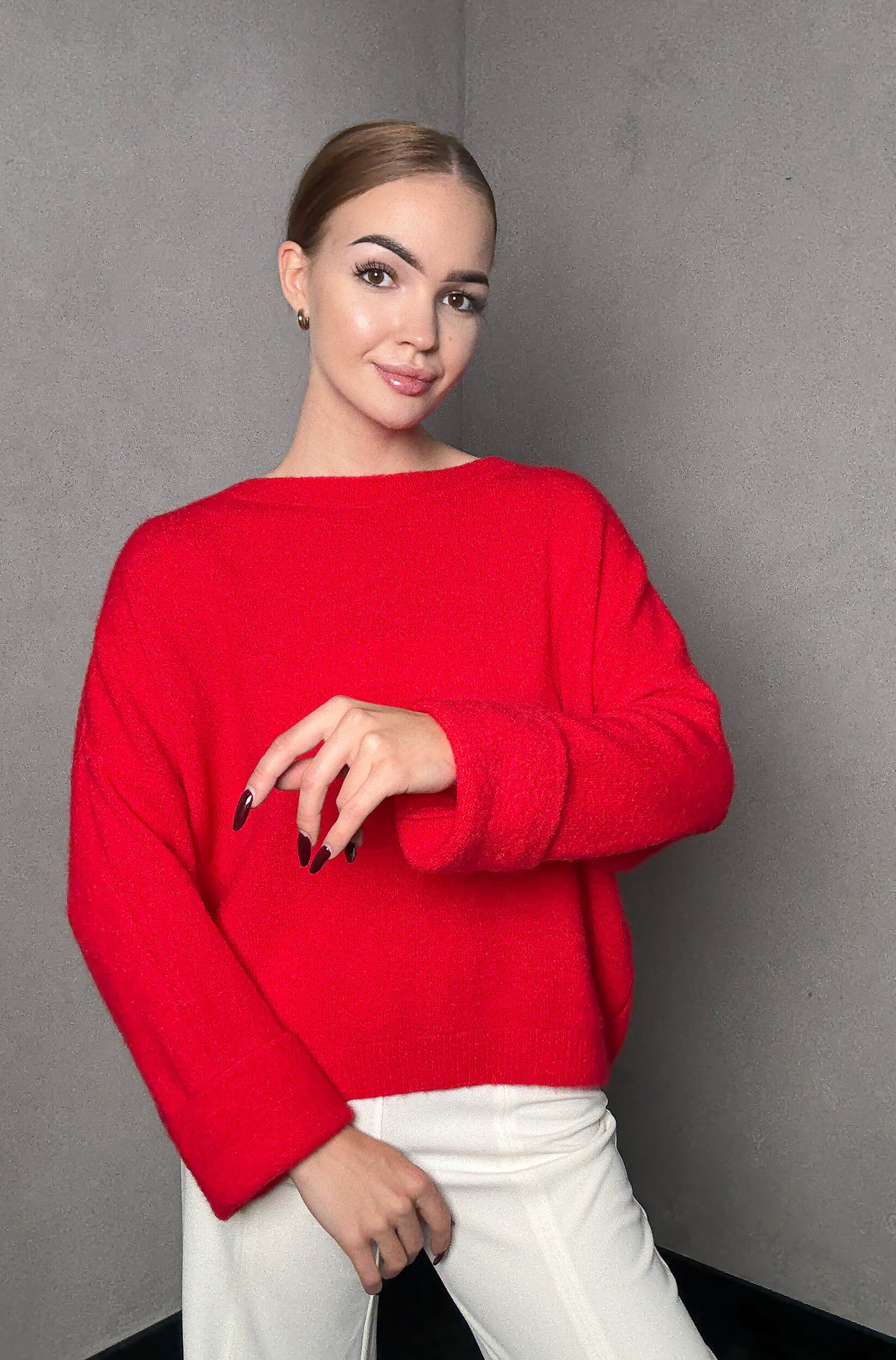 Miękki i przyjemny w dotyku sweter wykonany z wysokiej jakości dzianiny. Luźny krój zapewnia swobodę ruchów i komfort noszenia, a minimalistyczny design sprawia, że łatwo dopasujesz go do różnych stylizacji – zarówno codziennych, jak i bardziej eleganckich.